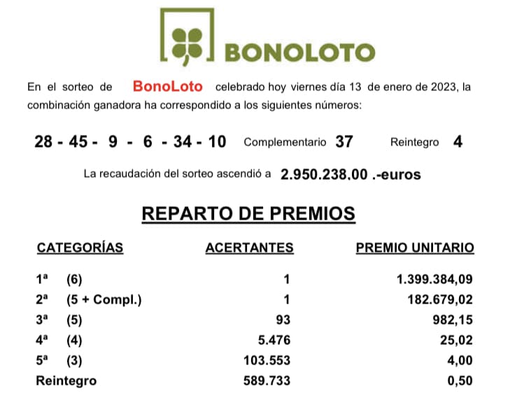 En el sorteo de Bonoloto de ayer viernes 13 de enero ha habido un acertante de segunda categoría (5 + Complementario) en la provincia de Soria.