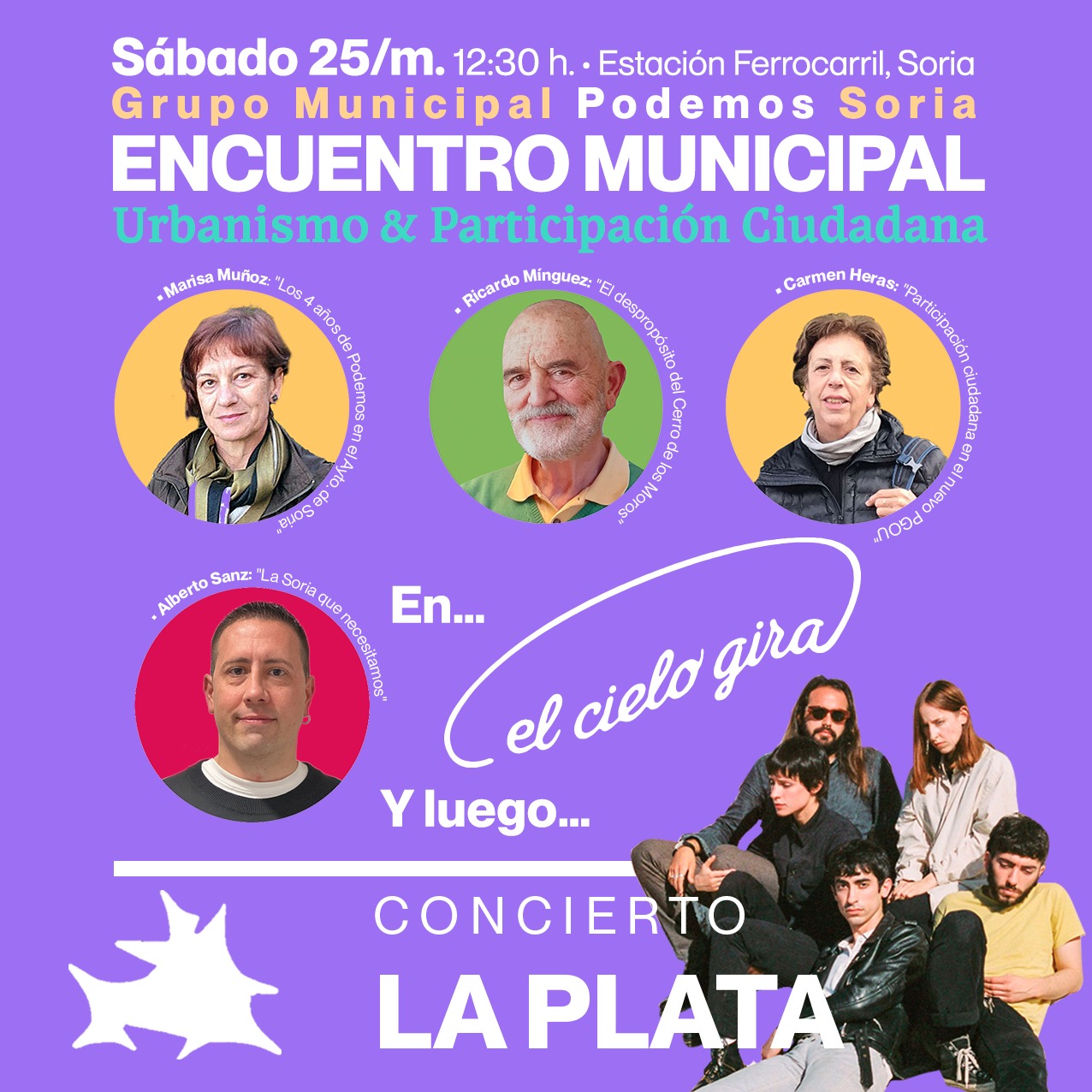 El acto constará de cuatro intervenciones breves. Lo abrirá la concejala de Podemos en el consistorio soriano, Marisa Muñoz, en un repaso a todo lo alcanzado por el partido morado en esta su primera legislatura en el ayuntamiento de la capital. A continuación tomará la palabra el doctor ingeniero de caminos Ricardo Mínguez en una ponencia titulada “El despropósito del Cerro de los Moros”. Seguidamente intervendrá Carmen Heras abordando la manera en que la ciudadanía de Soria podrá intervenir en la elaboración de un nuevo Plan general de Ordenación Urbana. Cerrará el acto Alberto Sanz, candidato a la alcaldía en las próximas elecciones municipales, con una exposición de los proyectos que el grupo municipal tiene de cara al futuro que han dado en llamar “La Soria que necesitamos”.