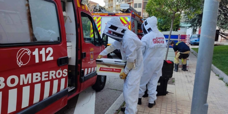 Los Bomberos de Soria continúan retirando colmenas de abejas en el casco urbano