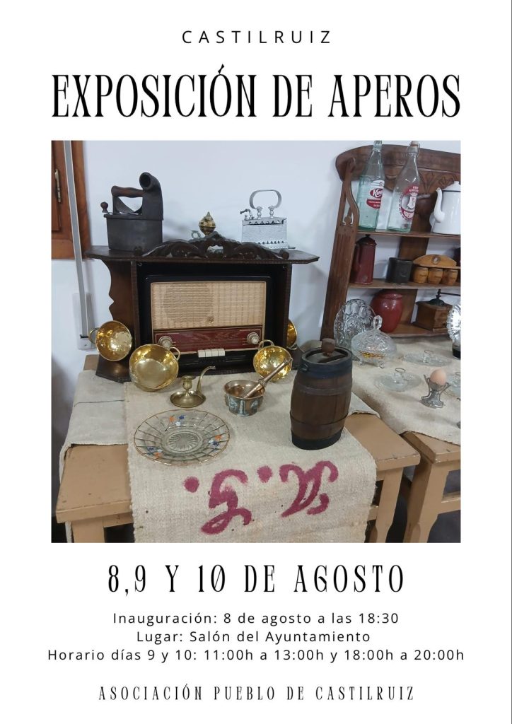 La asociación del Pueblo de Castilruiz ha preparado para los días 8, 9 y 10 de agosto una pequeña exposición de aperos. Esta es una pequeña muestra de lo que podrán ver durante estos días: