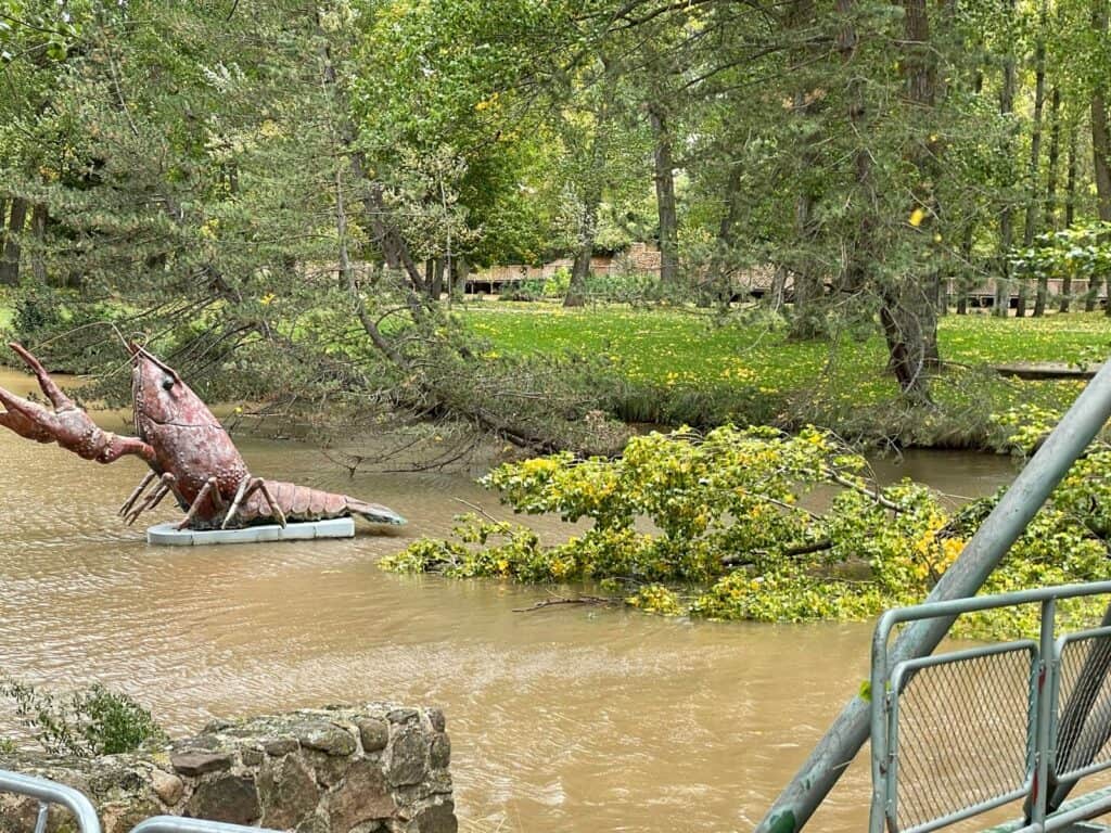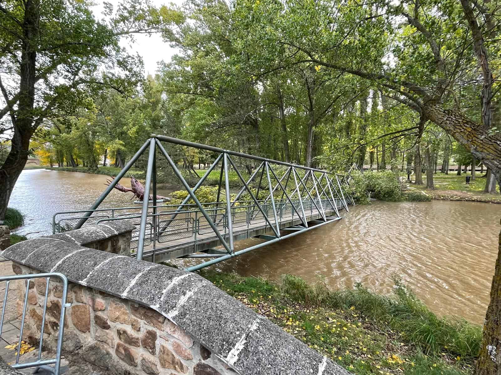 Esta mañana se producía la caída de un árbol en el paraje del Soto Playa. Las fuertes rachas de viento han provocado la caída de este ejemplar de chopo que se encontraba en la orilla próximo a la pasarela que une la isla del Soto Playa y la orilla derecha del Duero. Es la pasarela donde se encuentra la escultura del cangrejo de río.