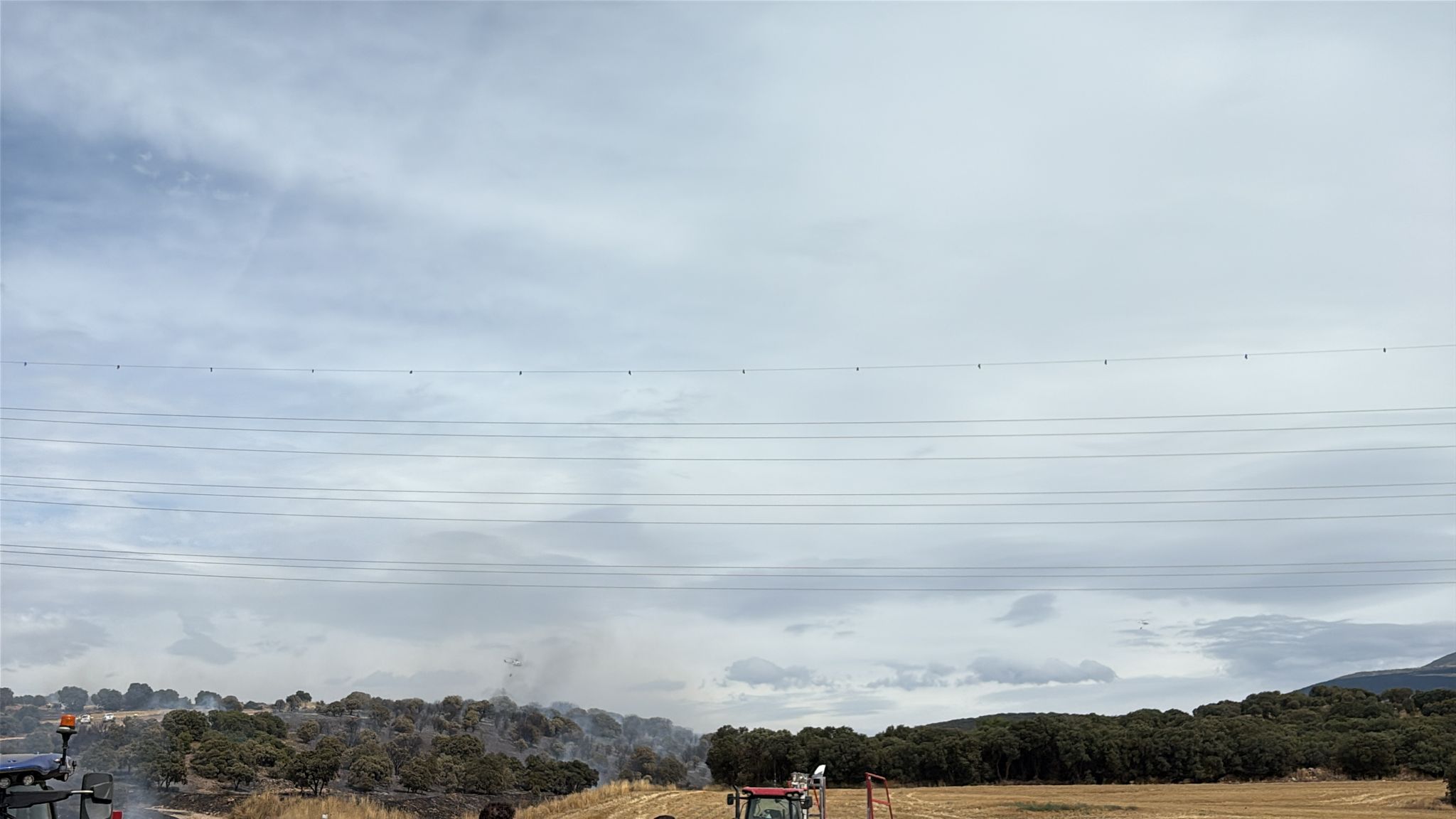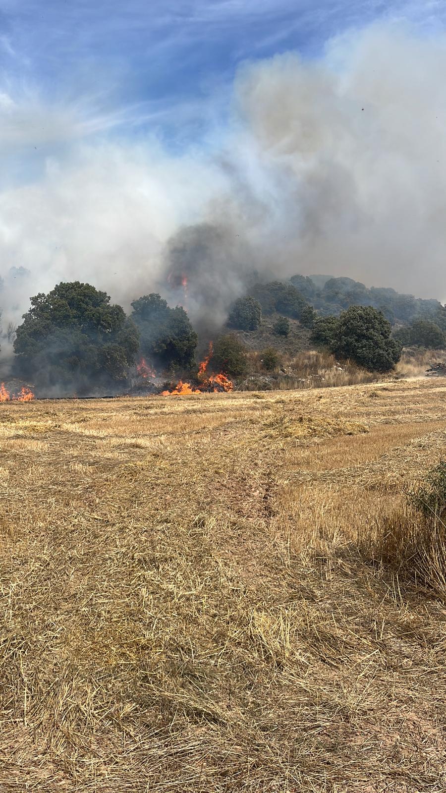 Un gran número de medios han sido movilizados para acometer la extinción del fuego que podría haber arrasado en torno a unas 25 hectáreas entre rastrojo, monte bajo y monte de encinas.