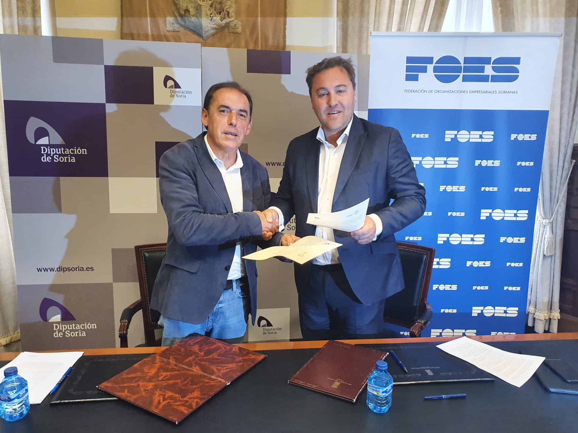 El presidente de la Diputación, Benito Serrano, y el vicepresidente de FOES, Jesús Izquierdo, han firmado hoy el convenio de...