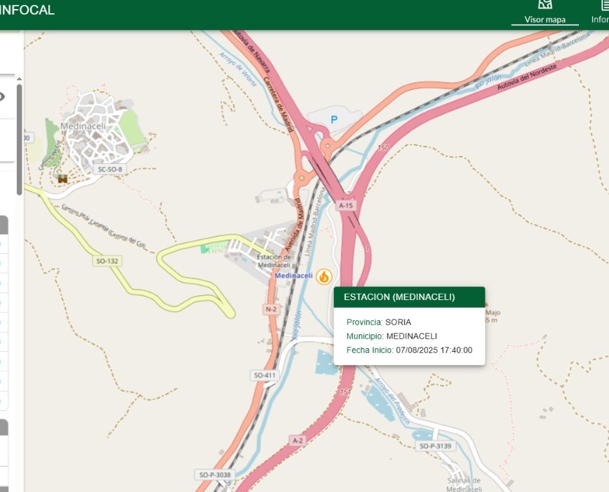 Sobre las 17:40 horas de este jueves se ha dado aviso de un incendio en el municipio de Medinaceli. Concretamente en el barrio de la Estación, cerca de la A-2. Según informa INFOCAL, a esta hora permanece activo, e intervienen en su extinción 2 Agentes medioambientales / Celadores, 1 Cuadrillas terrestres, 3 Autobombas, 1 ELIF / BRIF y 1 Helicópteros / Hidroaviones.