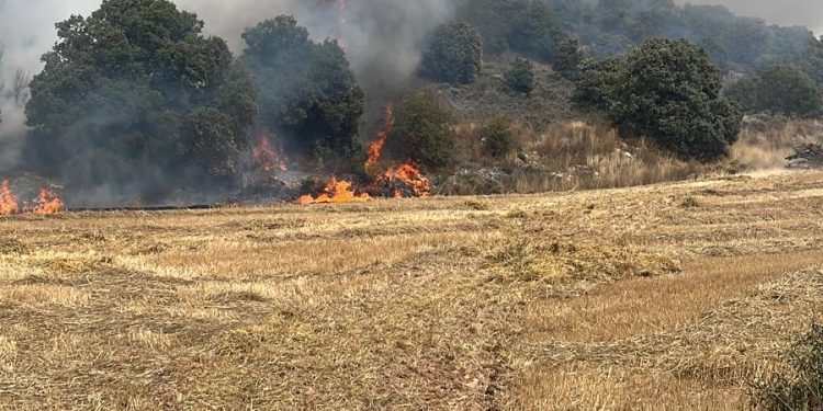 Esta tarde se ha producido un incendio en Ólvega. Se ha dado aviso a INFOCAL sobre las 13:47 de un fuego en el paraje de Las Cabañeras, muy cerca del casco urbano de Ólvega. El fuego se encuentra activo y hay 17 medios activados para su extinción: 5 Agentes medioambientales / Celadores, 3 Cuadrillas terrestres, 3 Autobombas, 1 Bulldozer, 1 ELIF / BRIF, y 4 Helicópteros / Hidroaviones. También está en el lugar la corporación municipal, con la alcaldesa Elia Jiménez a la cabeza, para ayudar en lo que requieran los medios de extinción.