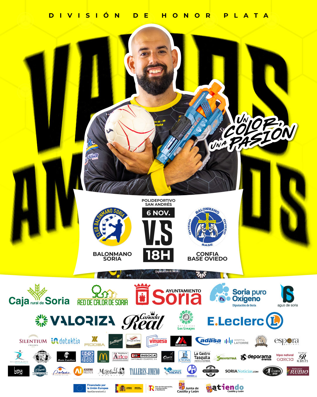 El Polideportivo San Andrés acogerá este sábado (18:00 horas) un duelo clave para los intereses del Balonmano Soria en la División de Honor Plata. El conjunto amarillo recibirá a Confía Base Oviedo, equipo que llega a Soria con dos puntos de ventaja en la clasificación y que se ha consolidado como uno de los rivales directos por los objetivos de la temporada.