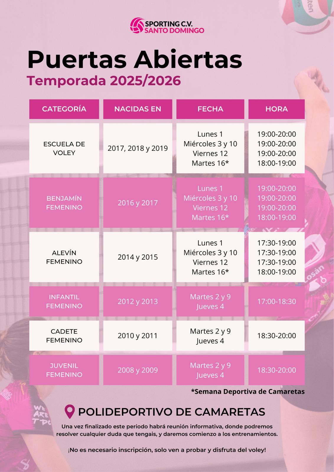 Read moreDetailsEl Sporting Santo Domingo comienza la temporada 2025/2026 ofertando varias jornadas de puertas abiertas para todas las categorías femeninas en...