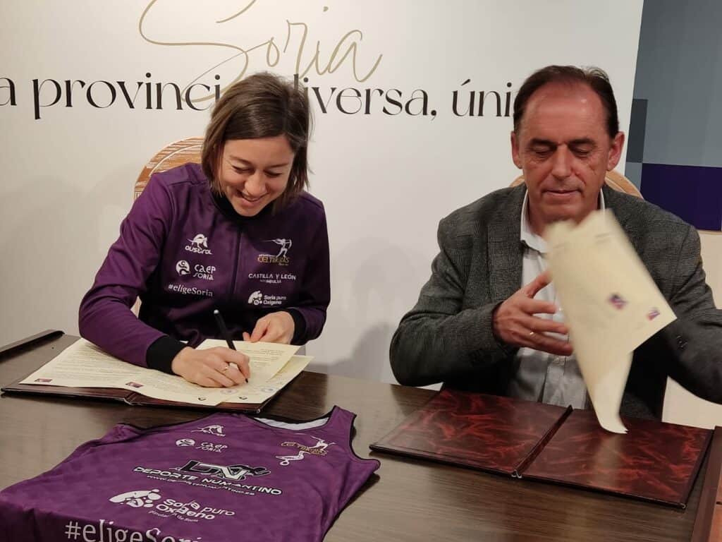 Benito Serrano, presidente de la Diputación de Soria, y Raquel Álvarez, presidente del Club de Atletismo Celtíberas, han sellado esta mañana un convenio de colaboración. Tras la firma, el presidente destacaba que «es un placer grabar estos convenios. Es el tercer año que se firma con Las Celtíberas. En un deporte especialmente significativo en nuestra provincia. Un club en continuo crecimiento, desde que empezamos a prestar la colaboración». El club participa en la Liga Iberdrola, la máxima categoría en su disciplina en España. «Estamos seguros de que como hasta ahora seguirán representando a nuestra provincia con determinación como lo han hecho siempre» decía Serrano.