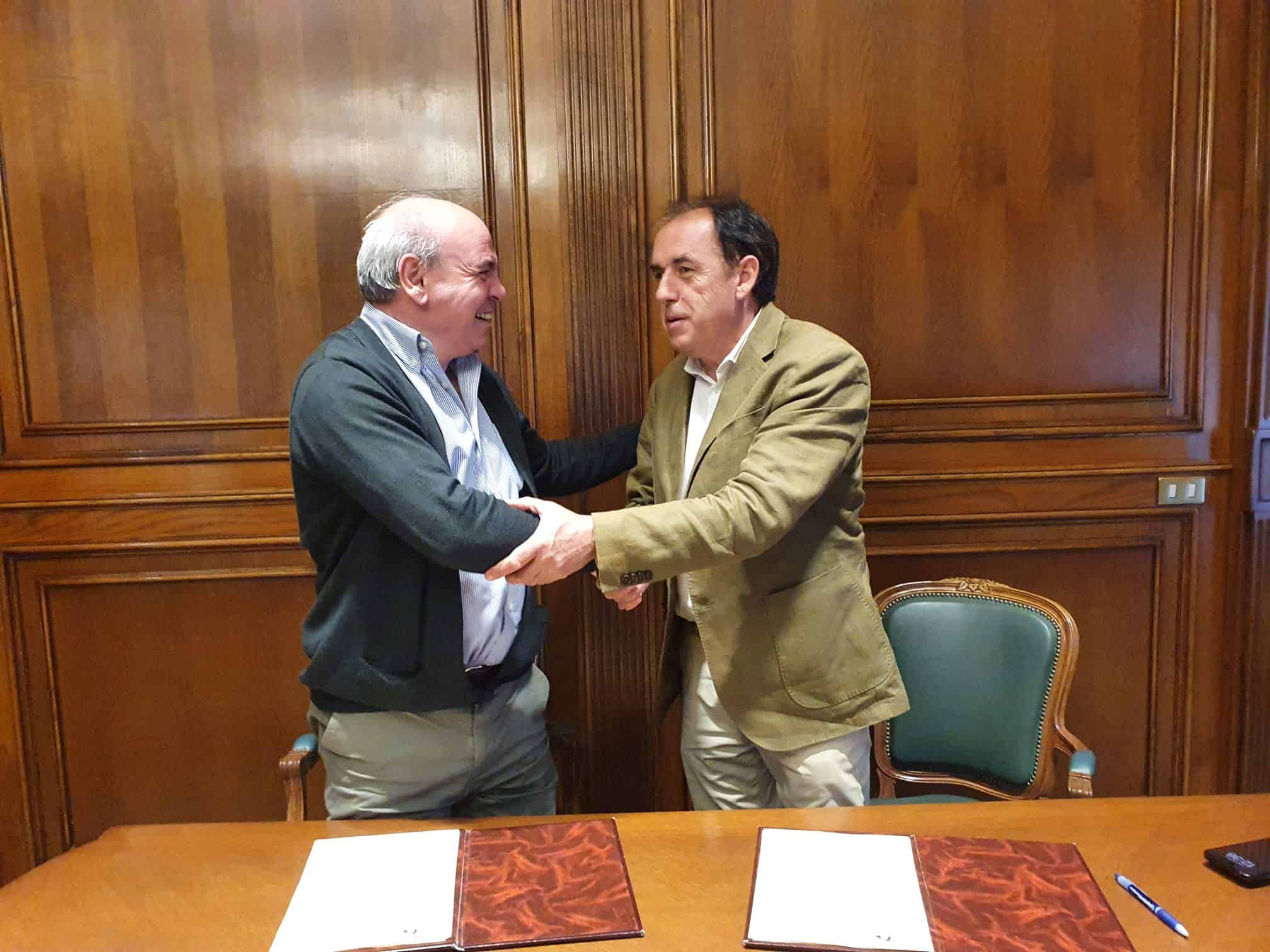 El presidente de la Diputación, Benito Serrano, junto con el alcalde de Deza, Vicente Alejandre, han procedido a firma del convenio de colaboración para la ejecución de la obra de la construcción de la estación depuradora de aguas residuales del municipio.