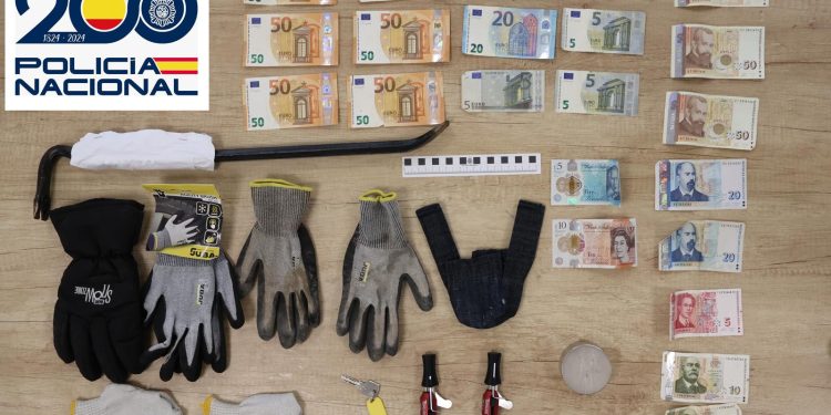 Además de la herramienta reseñada, se intervino dinero de curso legal búlgaro, británico, 360 euros y el vehículo en el que pretendían meterse.