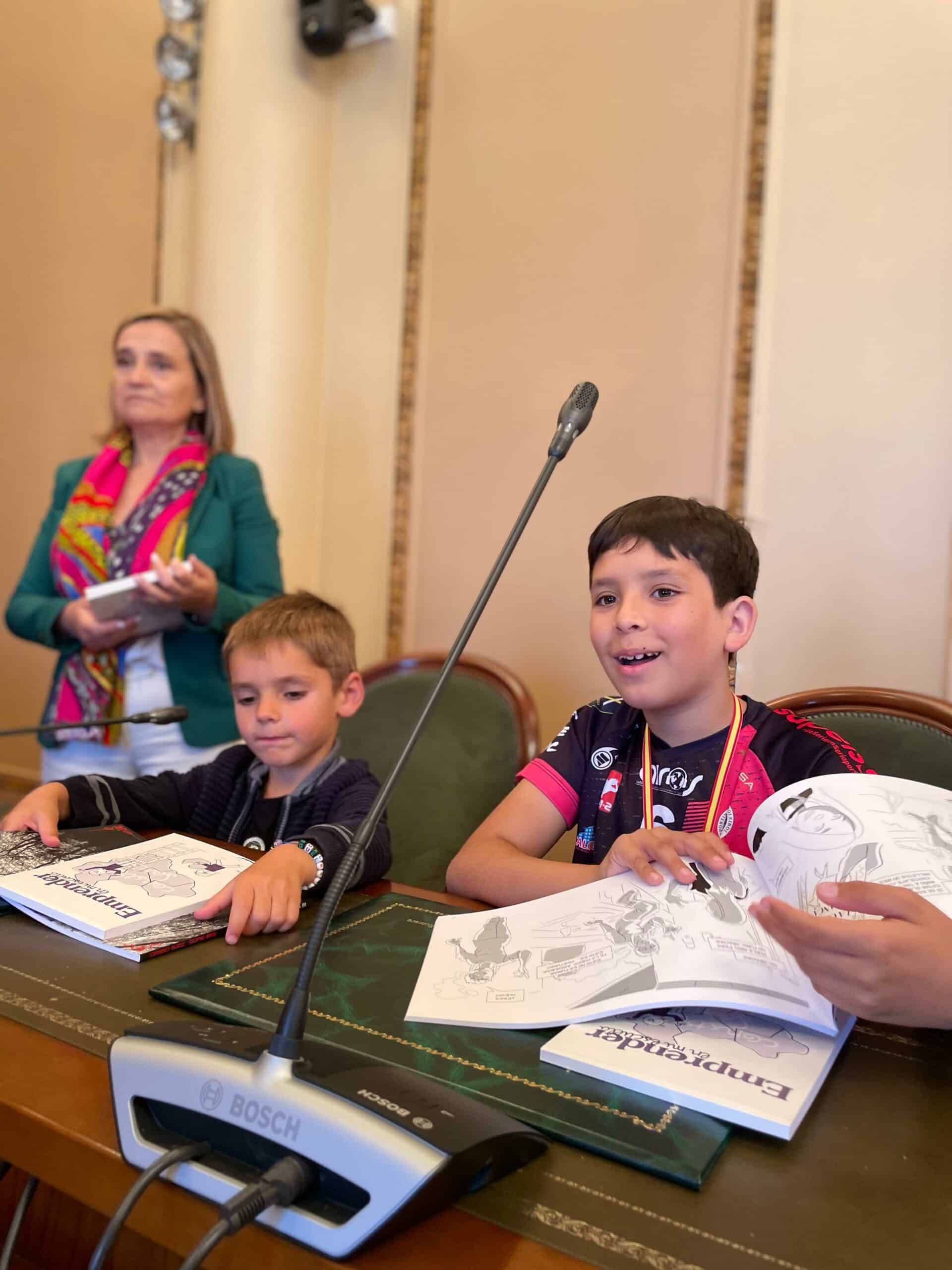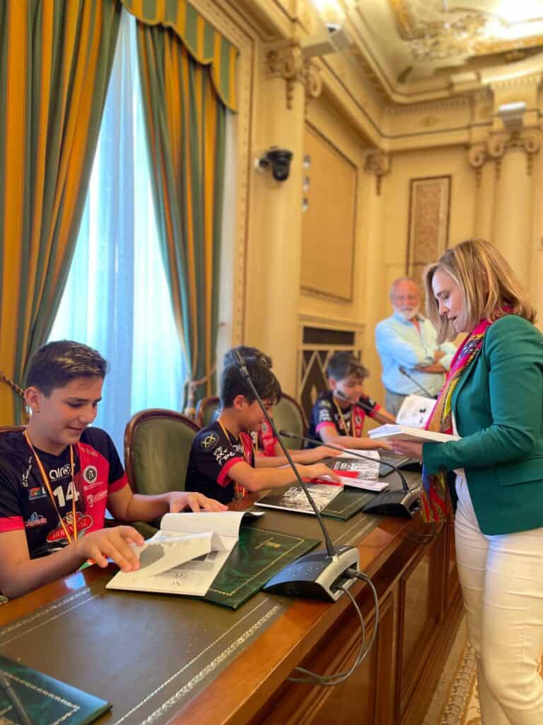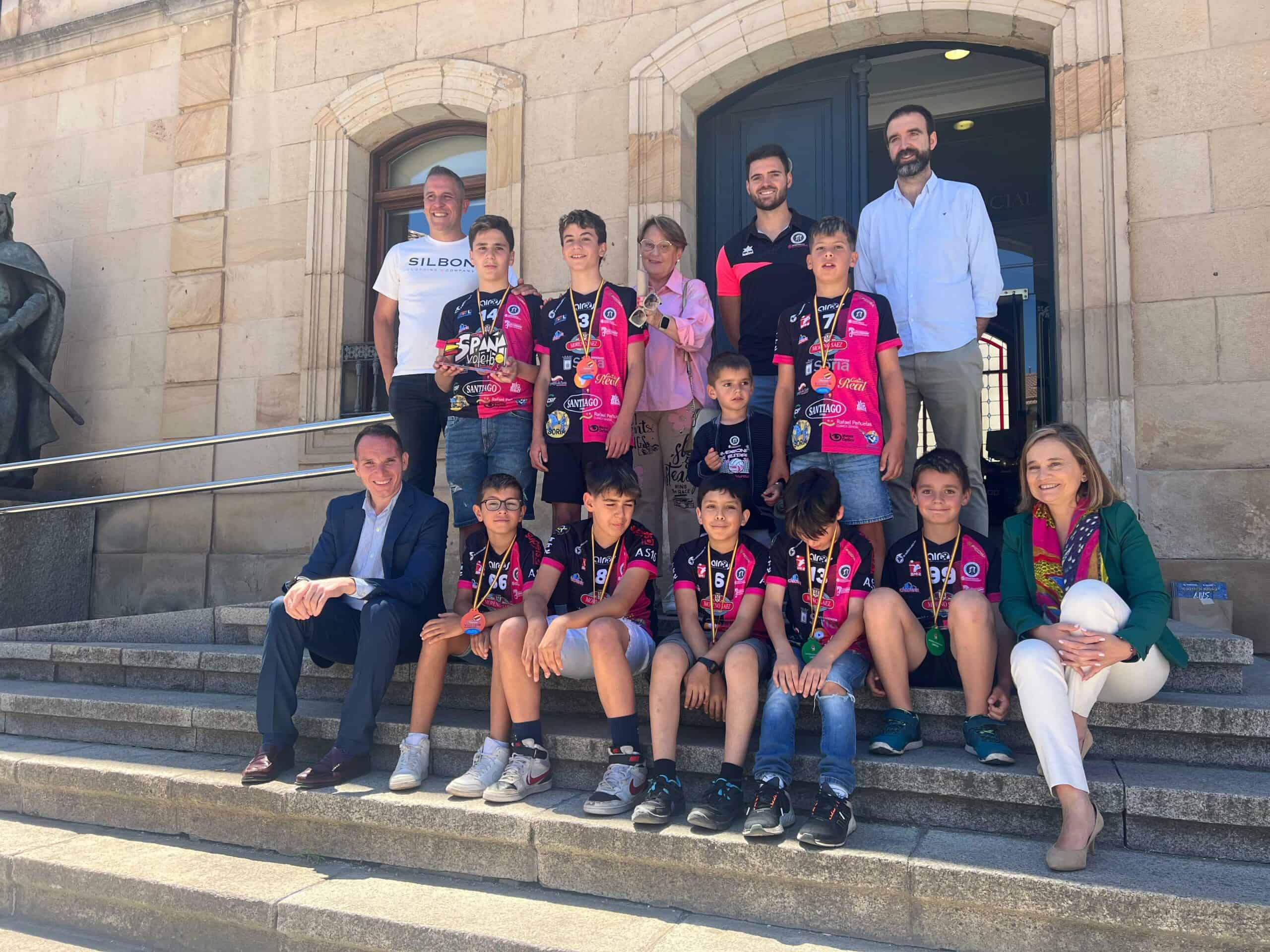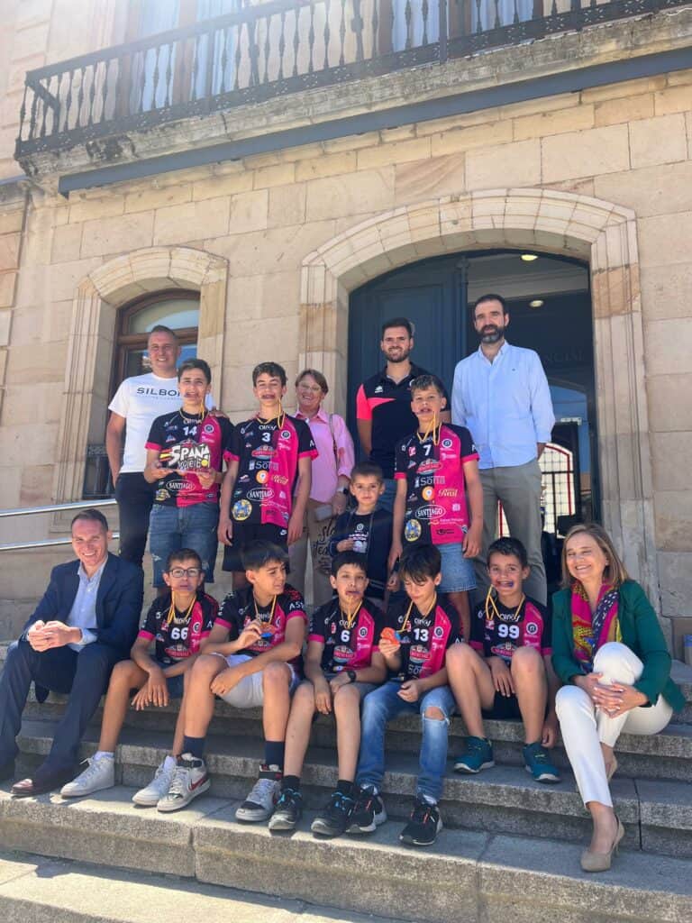 Jugadores y entrenadores del Canal 9 Sporting Santo Domingo han tenido una agenda institucional intensa esta mañana. Los campeones de España de categoría alevín de voleibol han sido recibidos a mediodía por el alcalde de Soria. Carlos Martínez les ha felicitado por el éxito cosechado. Junto con el edil de Deportes, Manuel Salvador, han reconocido la magnífica labor lograda por este conjunto de jugadores y les han hecho entrega de un obsequio.
