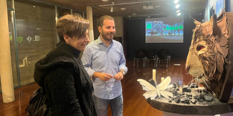 El concejal de Juventud, Eder García, ha acudido a la apertura de la muestra de los trabajos a concurso audiovisuales en el Certamen de Creación Joven en la sala de exposiciones de la Audiencia. El representante municipal ha querido agradecer el apoyo de distintas entidades como el Conservatorio y la Escuela de Artes, además de los trabajadores de la Audiencia que han colaborado en la preparación de la exposición y de forma especial “a todas y todos los participantes. Siempre he considerado que tiene mucho mérito y generosidad compartir algo tan íntimo como es esa parte personal que vuelcas en cada obra, pictórica, fotográfica o musical… Debemos agradecer a las personas jóvenes que nos lo regalen”.
