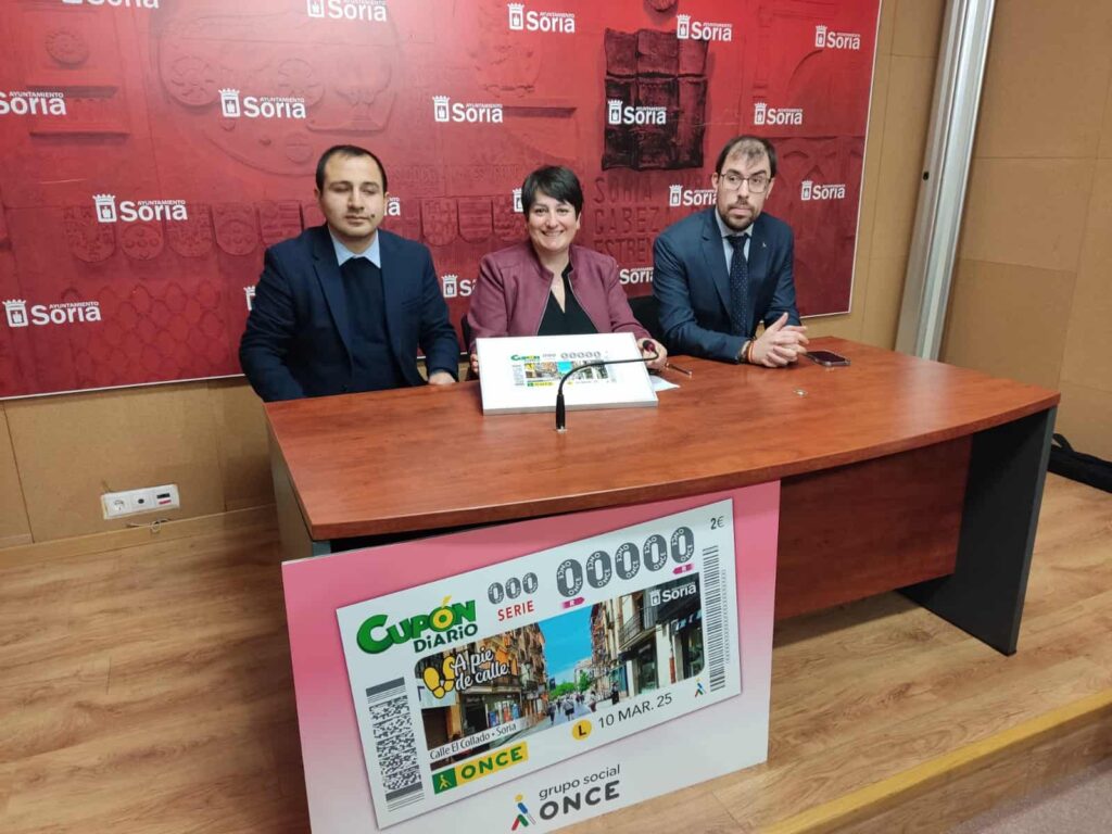 El cupón saldrá el 10 de marzo, dentro de una colección de las calles más representativas de las ciudades. La foto fue entregada por el Ayuntamiento, y contará con 5 millones de cupones. Al año la provincia de Soria sale representada en 3 o 4 cupones. Hace poco fue el turno de la fortaleza de Gormaz, y próximamente vendrán más. En ese sentido, Luis Alberto Pareja ha anunciado también que la localidad de Calatañazor tendrá su cupón próximamente en la serie ‘Pueblos de película’.