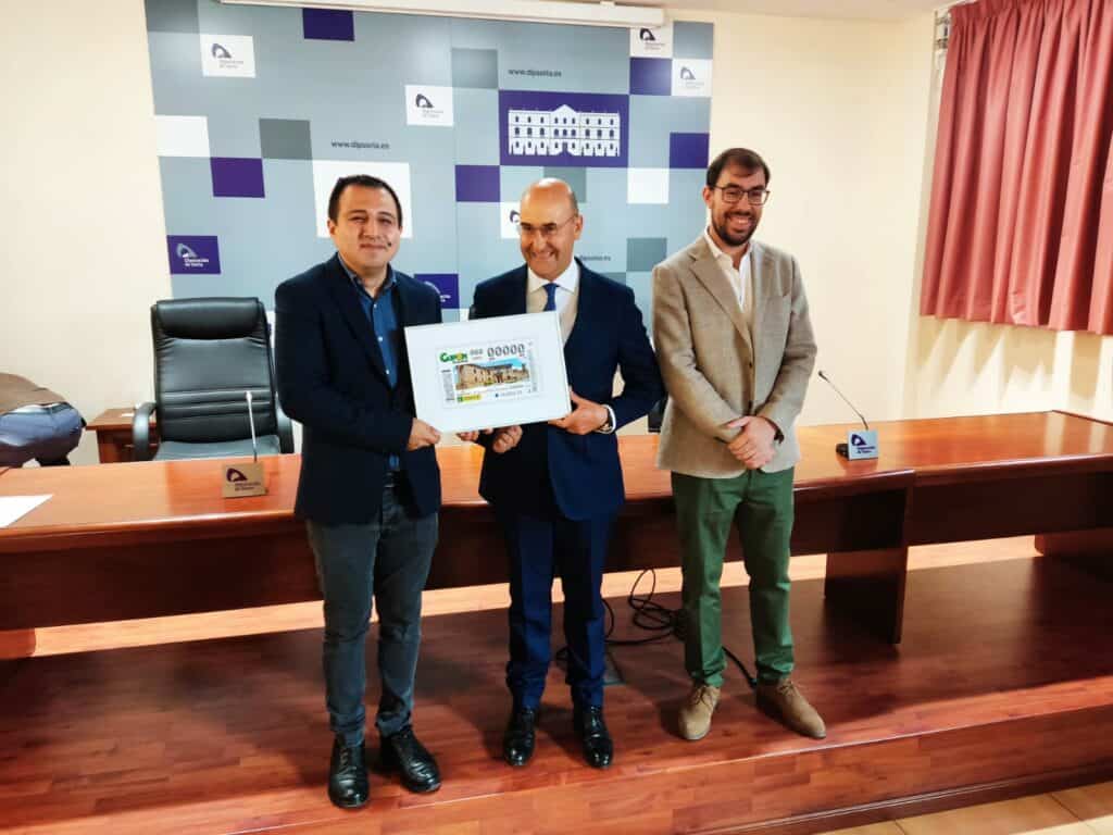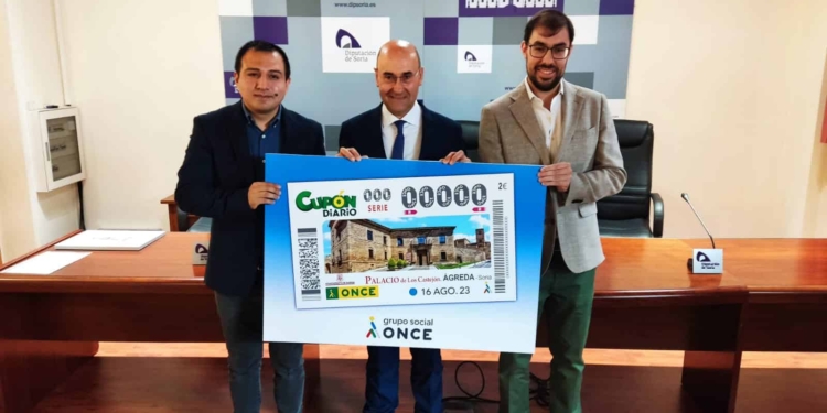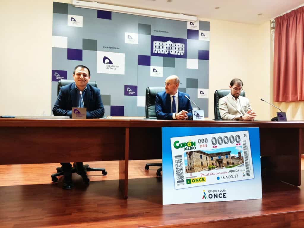 El cupón ha sido presentado por Luis Alberto Pareja Gallegos, Director de la Agencia de la ONCE en Soria, Rodrigo Gonzalo Ramírez, Vicepresidente del Consejo Territorial de la ONCE en Castilla y León y Jesús Manuel Alonso Jiménez, alcalde de Ágreda.