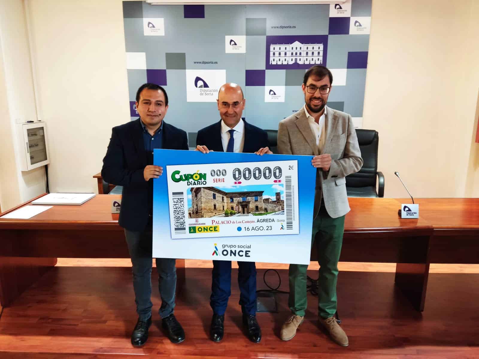 El cupón ha sido presentado por Luis Alberto Pareja Gallegos, Director de la Agencia de la ONCE en Soria, Rodrigo Gonzalo Ramírez, Vicepresidente del Consejo Territorial de la ONCE en Castilla y León y Jesús Manuel Alonso Jiménez, alcalde de Ágreda.
