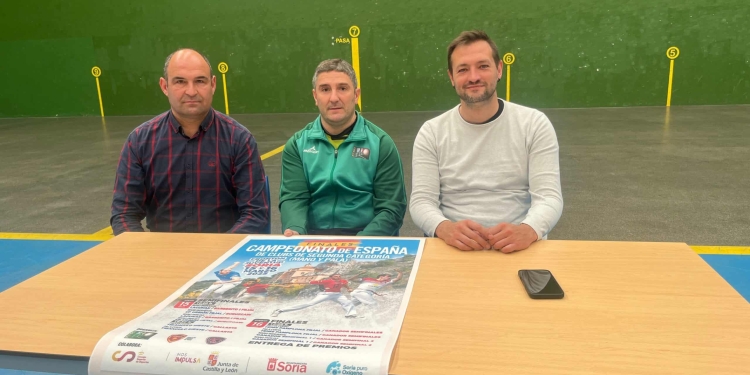 El presidente del club Pelota Urbión, José Luis Molina, ha presentado el campeonato de España de segunda categoría que se celebrará este fin de semana en el frontón de La Juventud y en el que el equipo B buscará el ascenso de categoría. El concejal de Deportes, Manuel Salvador, acompañado por el diputado provincial, Sergio Frías, ha insistido en la importancia de promocionar este deporte con tanto arraigo en la provincia y la búsqueda de escaparates para reforzar su atractivo entre los niños y niñas. Actualmente, se ha conseguido formar un grupo que semanalmente entrena en el polideportivo y se ha sumado a la cantera de la zona de Pinares.