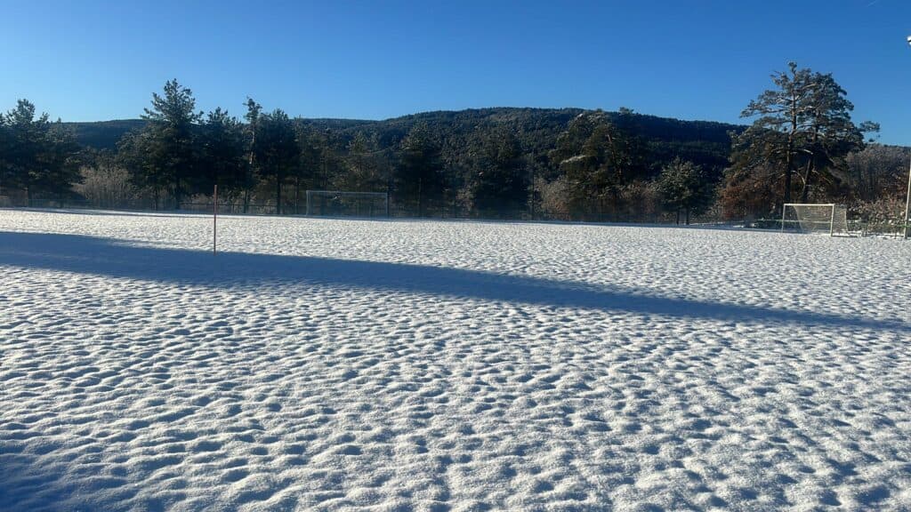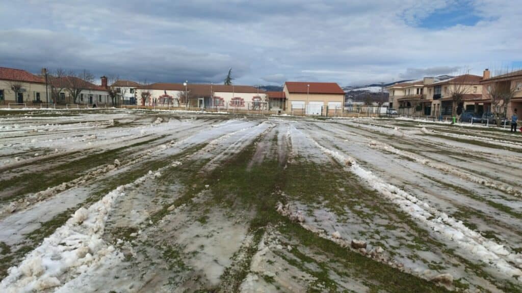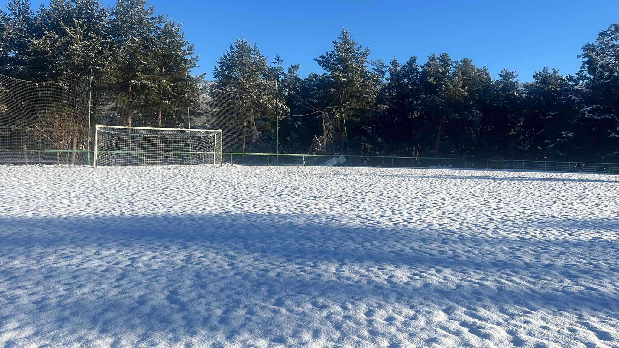 La nieve caída estos días ha impedido el desarrollo deportivo de varios encuentros. En la jornada de ayer fueron aplazados los encuentros Navaleno – Visontium y Covaleda – Golmayo-Camaretas. Así se encontraba ayer el campo municipal El Lomo, de Covaleda: