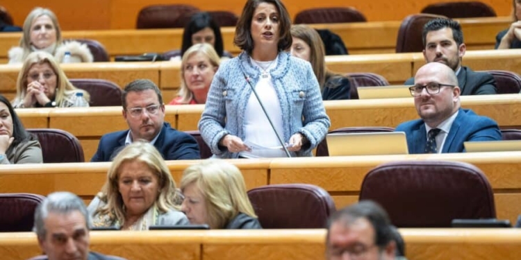 Durante la sesión de control al Gobierno, la senadora del PP recuerda que, en 2021, la Comisión Europea “abrió las puertas a la fiscalidad diferenciada en estas provincias, permitiendo unas ayudas al funcionamiento de las empresas de hasta el 20% de los costes laborales”.