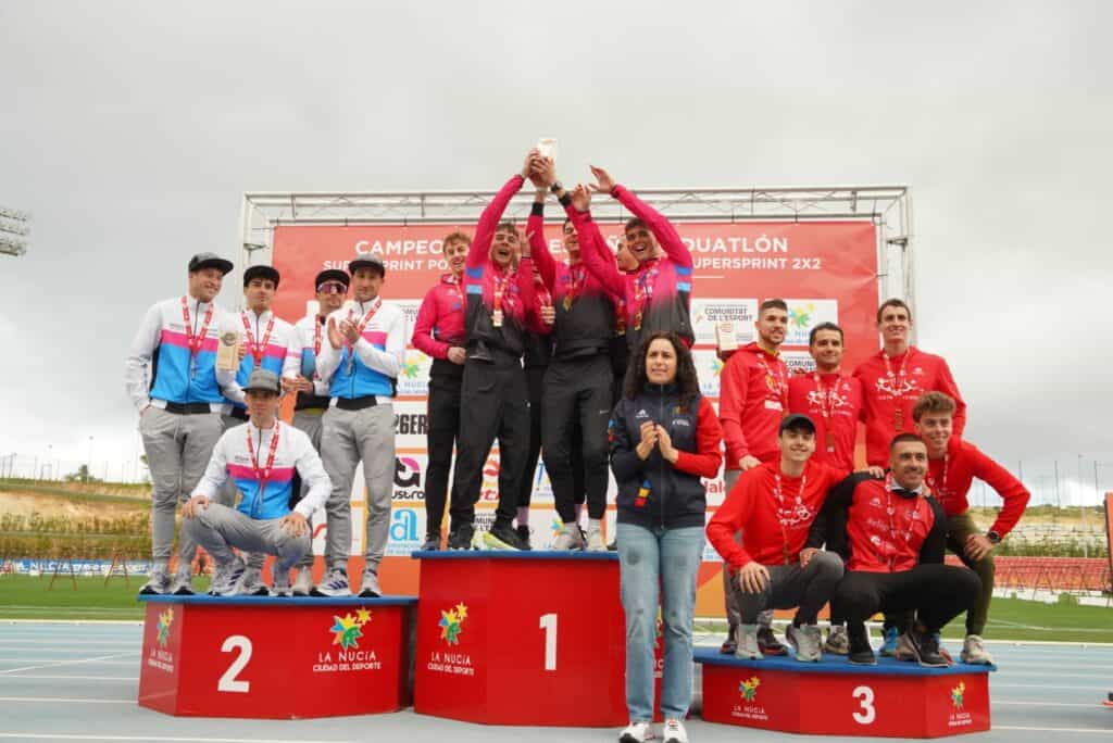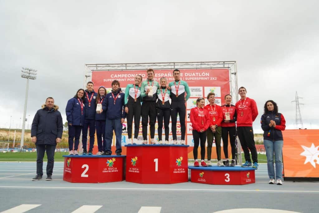 El domingo continuaron las alegrías en el Campeonato de Duatlón Supersprint por Clubes 2×2 con la consecución del último metal por parte del equipo masculino formado por Nicolás Heredero, Paco Martí, David Pérez, Daniel Martínez, Alfonso Izquierdo y Gorka Rodríguez. Los sorianos fueron terceros con un tiempo de 01:21:56 y solo superados en la línea de meta por dos equipos colosales como el Cidade de Lugo Fluvial (1:21:37) y el Peñota Dental Alusigma (1:21:50). De esta forma se cerraba así un gran fin de semana para el conjunto soriano con la también gran sexta posición para el equipo femenino.