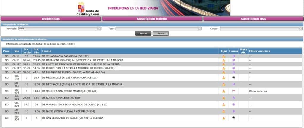 En las carreteras de la Junta de Castilla y León la situación es la siguiente: