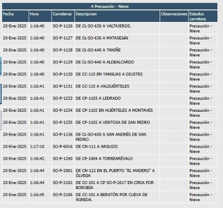 Estado de las carreteras sorianas por la nieve (12:30 horas)