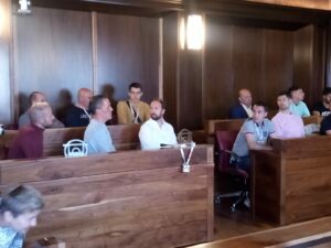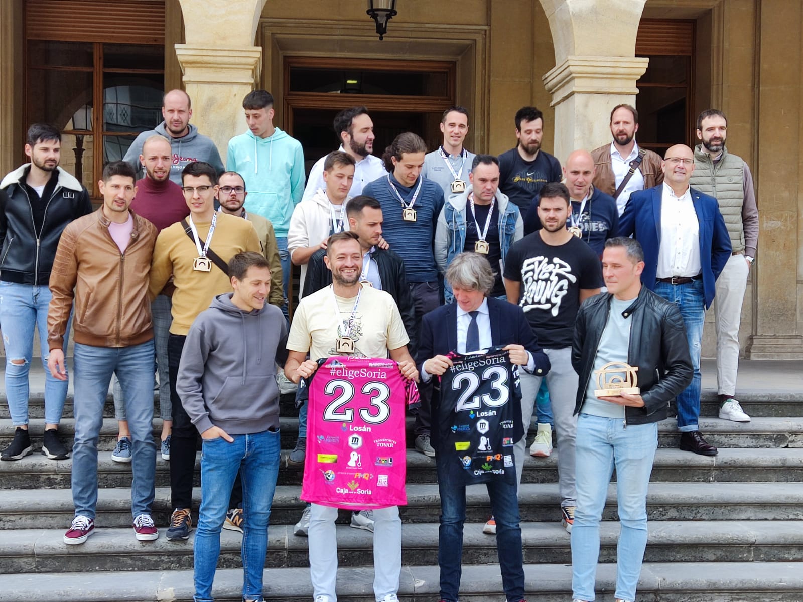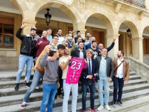Los campeones de Primera División Nacional de Voleibol, los jugadores, entrenadores, cuerpo técnico y directivo del Moreno Sáez Sporting, visitaron el Ayuntamiento de Soria esta semana, donde fueron recibidos por el alcalde de Soria y el concejal de Deportes.