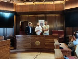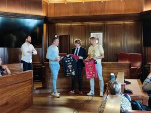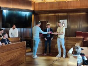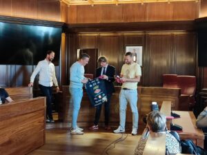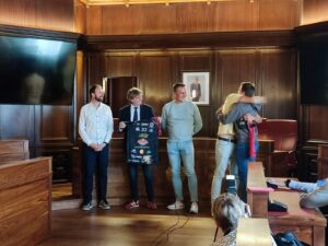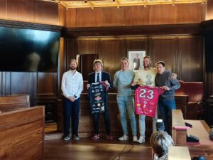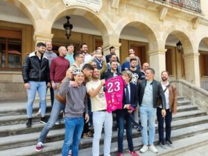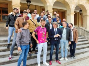 Los campeones de Primera División Nacional de Voleibol, los jugadores, entrenadores, cuerpo técnico y directivo del Moreno Sáez Sporting, visitaron el Ayuntamiento de Soria esta semana, donde fueron recibidos por el alcalde de Soria y el concejal de Deportes.