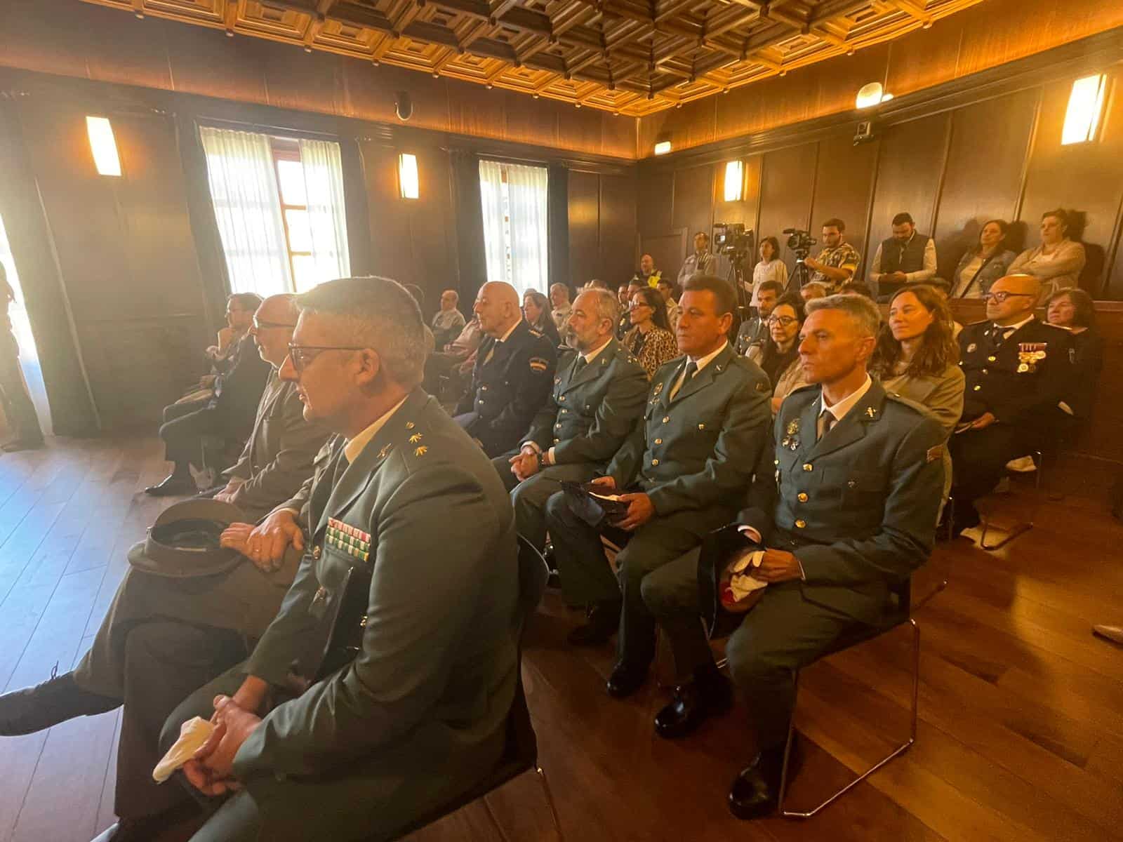 El alcalde Carlos Martínez ha presidido esta sesión acompañado por parte de la corporación local. El regidor ha manifestado que “nuestros agentes de la Policía Local son nuestros primeros embajadores de la ciudad. Son, en muchas ocasiones, la primera cara de Soria tanto para las personas que aquí viven como las que nos visitan”. Durante este acto de entrega de medallas, celebrado en el Salón de Plenos del Ayuntamiento, también se ha querido destacar la coordinación y colaboración con otros cuerpos de seguridad del Estado. Entre ellos, la Policía Nacional y la Guardia Civil, con los que “la colaboración, coordinación y cooperación con la Policía Local es diaria y esencial”.