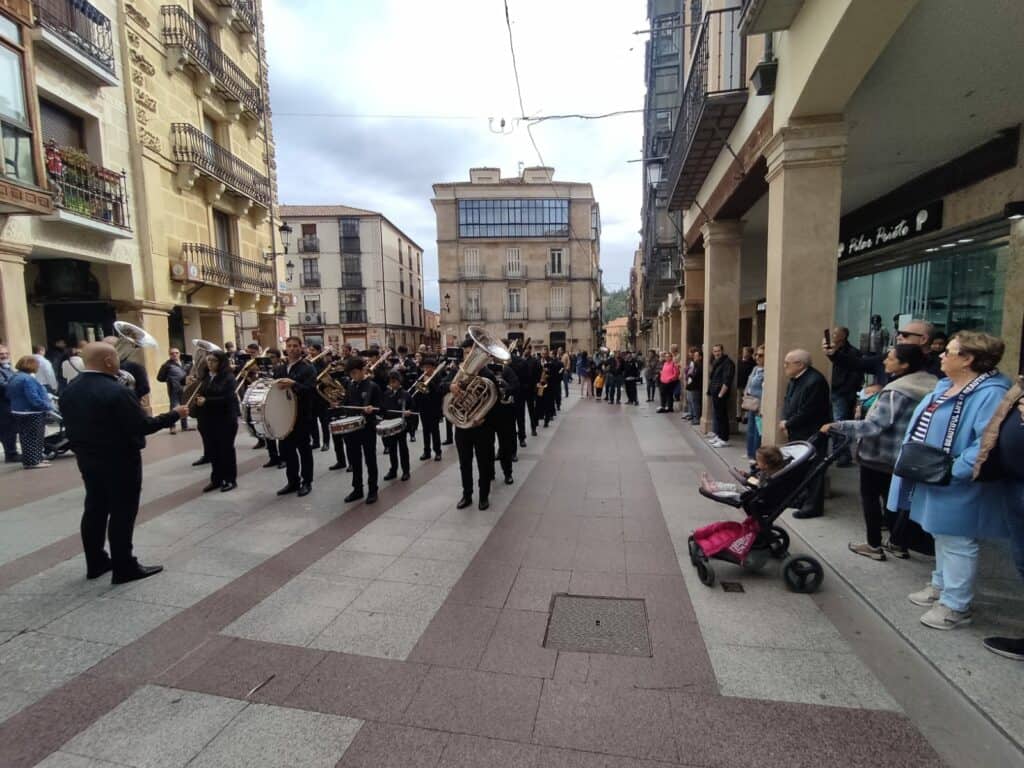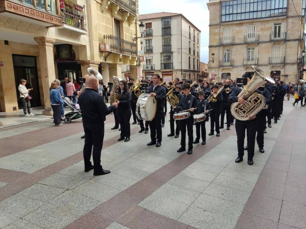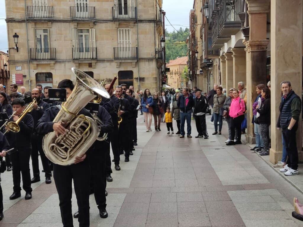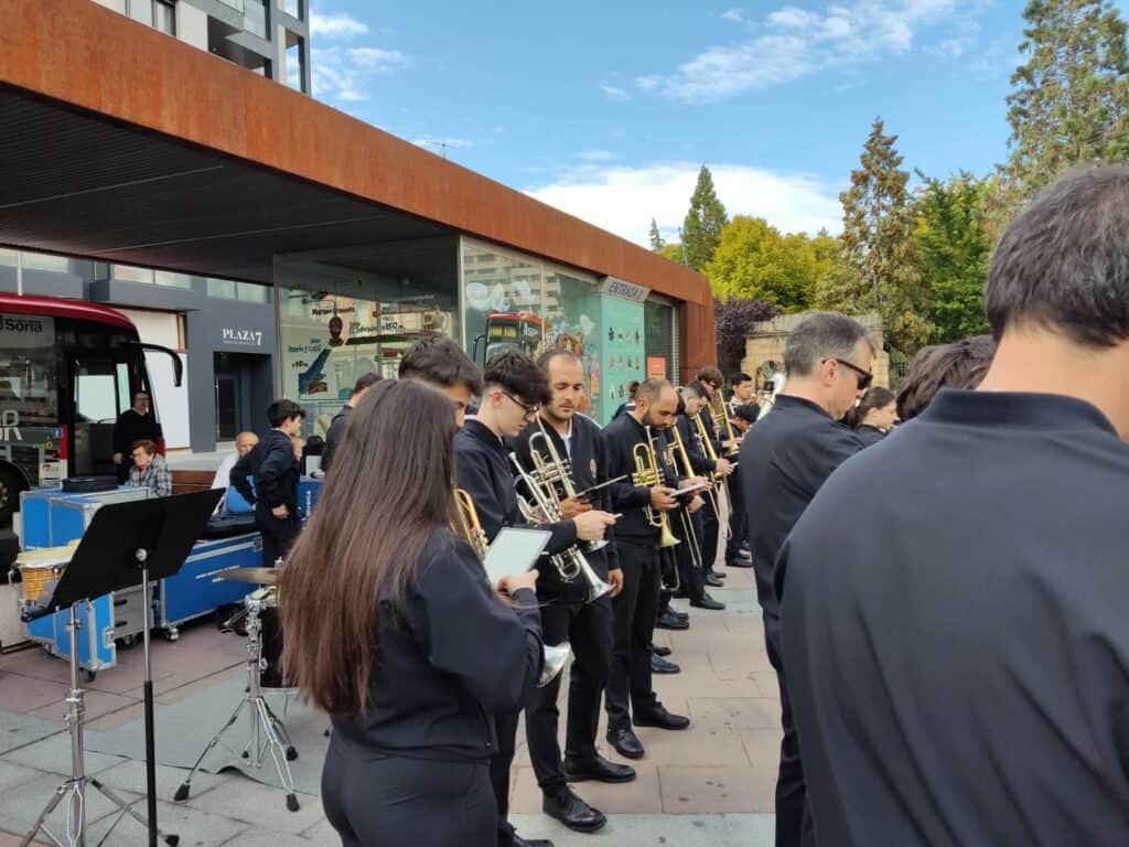Esta mañana se ha celebrado el primer pasacalles de la Banda Municipal de Música de Soria en el marco de las Fiestas de San Saturio 2024. Los músicos dirigidos por José Manuel Aceña han deleitado a sorianas y sorianos con un amplio repertorio que pasaba desde pasodobles hasta ABBA, Alaska o Mocedades. Desde la Plaza Mayor de Soria han partido por El Collado, con dos paradas en el viaje de ida asentadas en la Plaza de El Rosel y San Blas, y la Plaza de las Mujeres. Tras reanudar la marcha desde este punto se han dirigido hasta la Plaza Mariano Granados, donde han celebrado un concierto. Al terminar han regresado de nuevo a la Plaza Mayor por el mismo recorrido, siendo aplaudidos por todos aquellos que se han acercado a disfrutar de su buen hacer musical.