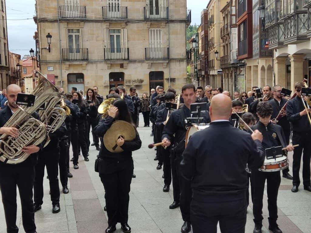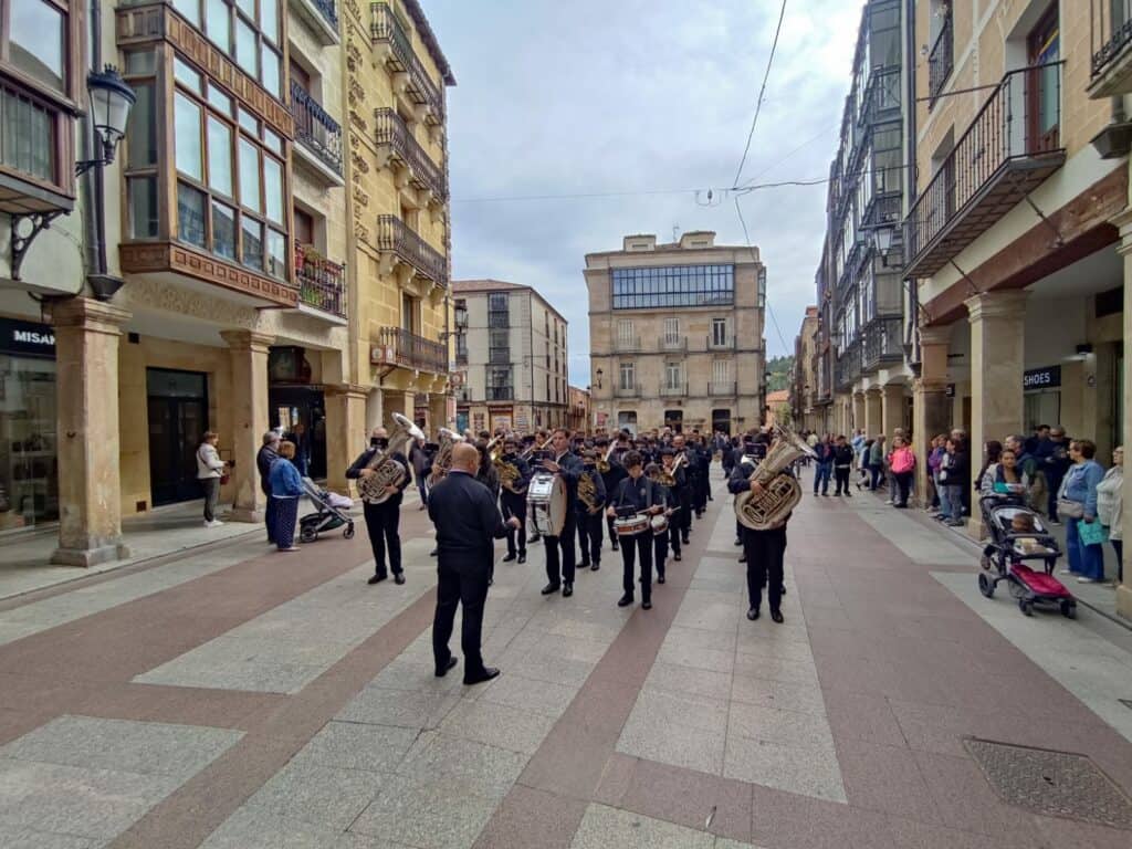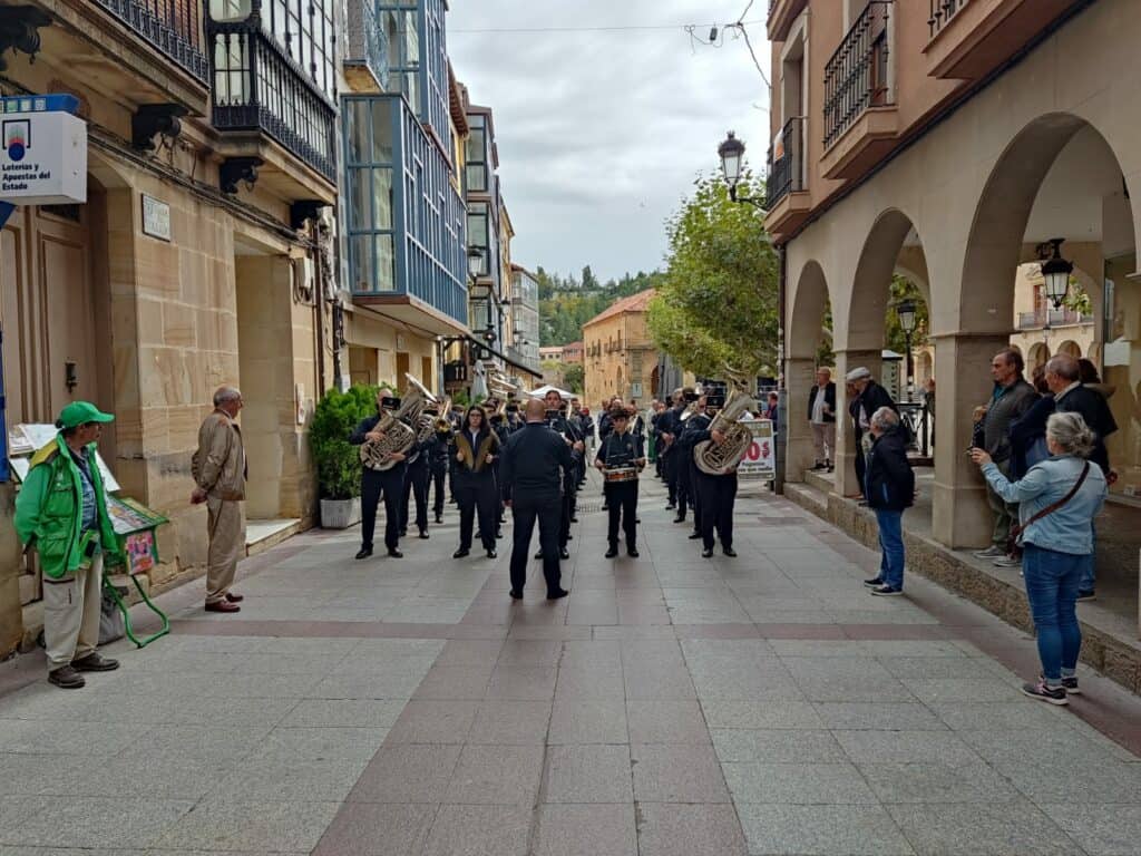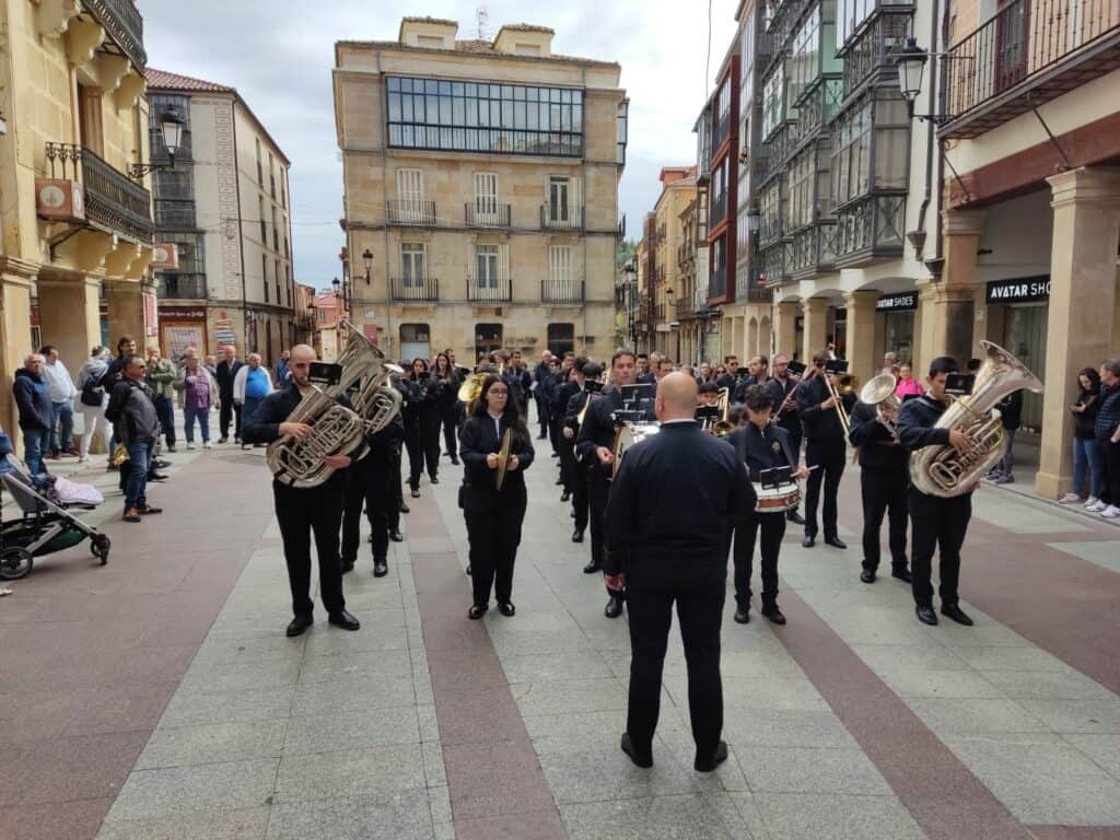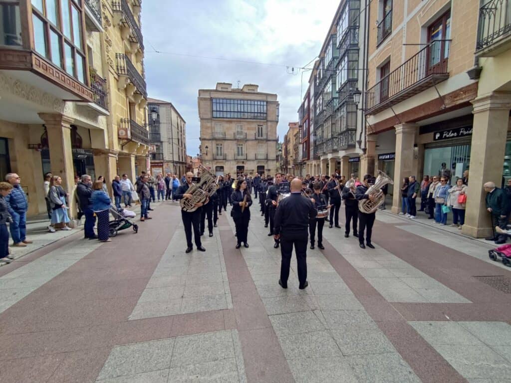 Esta mañana se ha celebrado el primer pasacalles de la Banda Municipal de Música de Soria en el marco de las Fiestas de San Saturio 2024. Los músicos dirigidos por José Manuel Aceña han deleitado a sorianas y sorianos con un amplio repertorio que pasaba desde pasodobles hasta ABBA, Alaska o Mocedades. Desde la Plaza Mayor de Soria han partido por El Collado, con dos paradas en el viaje de ida asentadas en la Plaza de El Rosel y San Blas, y la Plaza de las Mujeres. Tras reanudar la marcha desde este punto se han dirigido hasta la Plaza Mariano Granados, donde han celebrado un concierto. Al terminar han regresado de nuevo a la Plaza Mayor por el mismo recorrido, siendo aplaudidos por todos aquellos que se han acercado a disfrutar de su buen hacer musical.