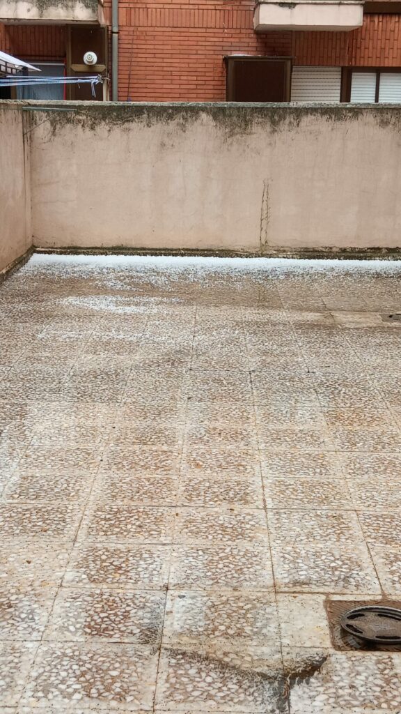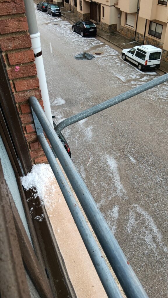 Como se puede ver en el vídeo facilitado por Marcos Martín o en las fotos compartidas por la Oficina de Turismo en esta localidad soriana la granizada ha sido fuerte.