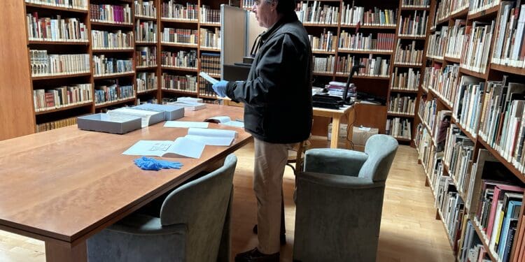 La biblioteca del Centro Cultural FUNDOS Fórum Soria – Gaya Nuño ha recibido la visita del investigador Emilio Ruiz con el objetivo de analizar las cartas que intercambiaron el crítico de arte soriano y el escultor aragonés Pablo Serrano. La labor que Ruiz está llevando a cabo con el también investigador Jesús Rubio, busca encontrar vínculos entre Gaya Nuño y Serrano en décadas posteriores a los años 50.