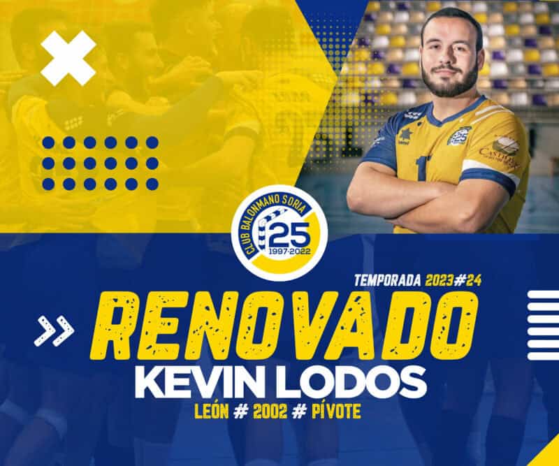 Esta próxima temporada continuará con el Club Balonmano Soria, Kevin Lodos García (León, 26-06-2022), tras la cesión del año pasado del jugador por parte de ADEMAR León y viendo su juventud, progresión y el rendimiento ofrecido a lo largo de la temporada pasada, el Club Balonmano Soria y el jugador han decidido alargar la relación para la temporada 2023-24.