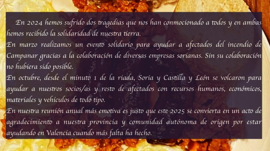 Durante el evento, se realizará un agradecimiento a Soria y Castilla y León por su colaboración con Valencia en las dos tragedias de 2024.
