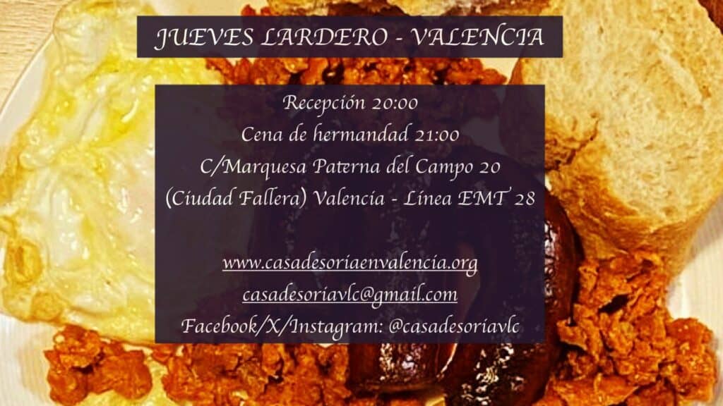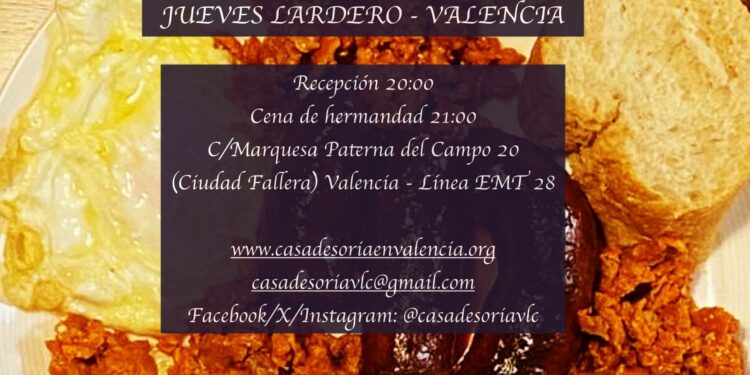 La Casa de Soria en Valencia desvela su menú, los colaboradores y abre las inscripciones para la celebración del Jueves Lardero 2025 en Valencia.