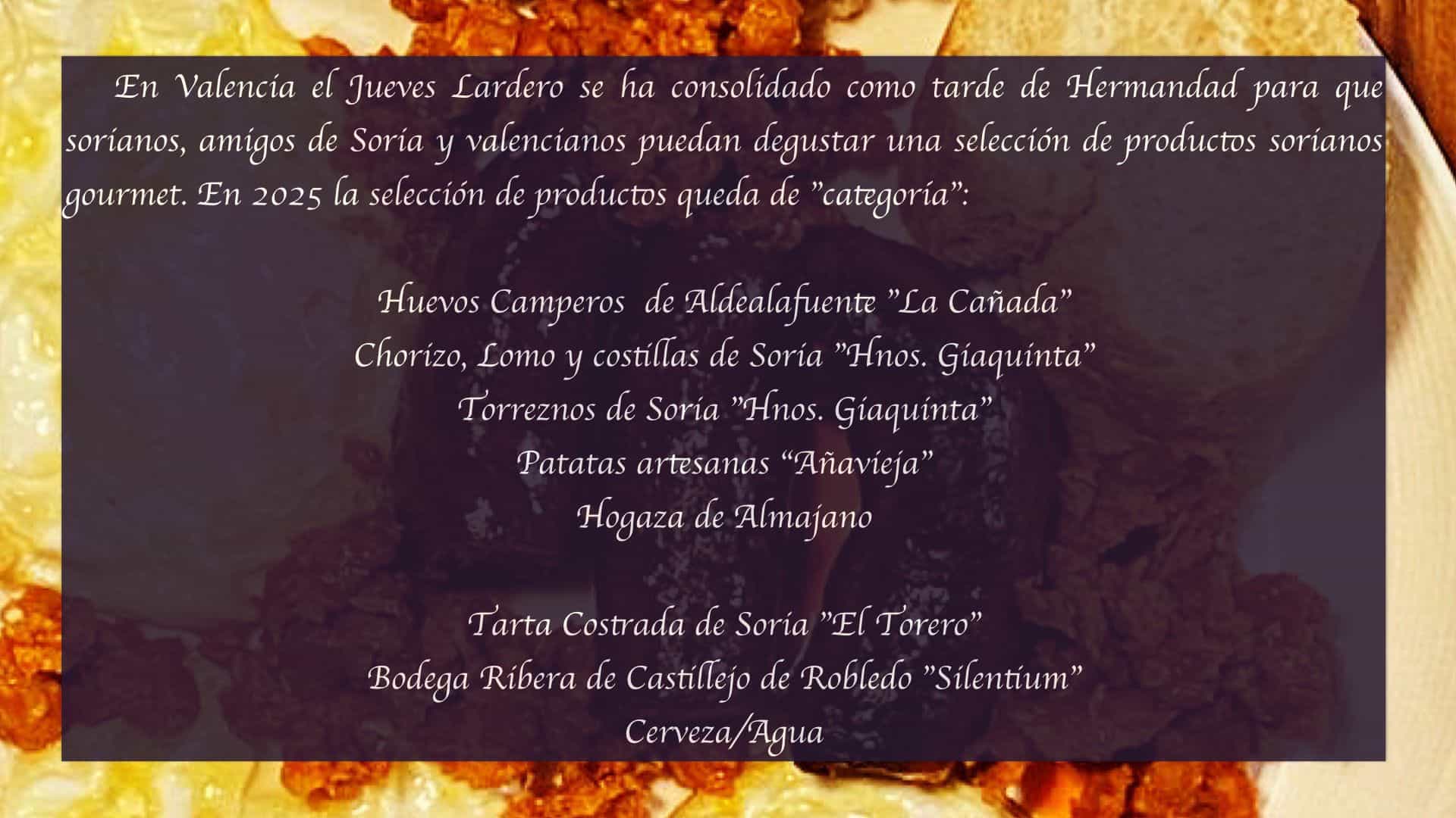 La Casa de Soria en Valencia desvela su menú, los colaboradores y abre las inscripciones para la celebración del Jueves Lardero 2025 en Valencia.