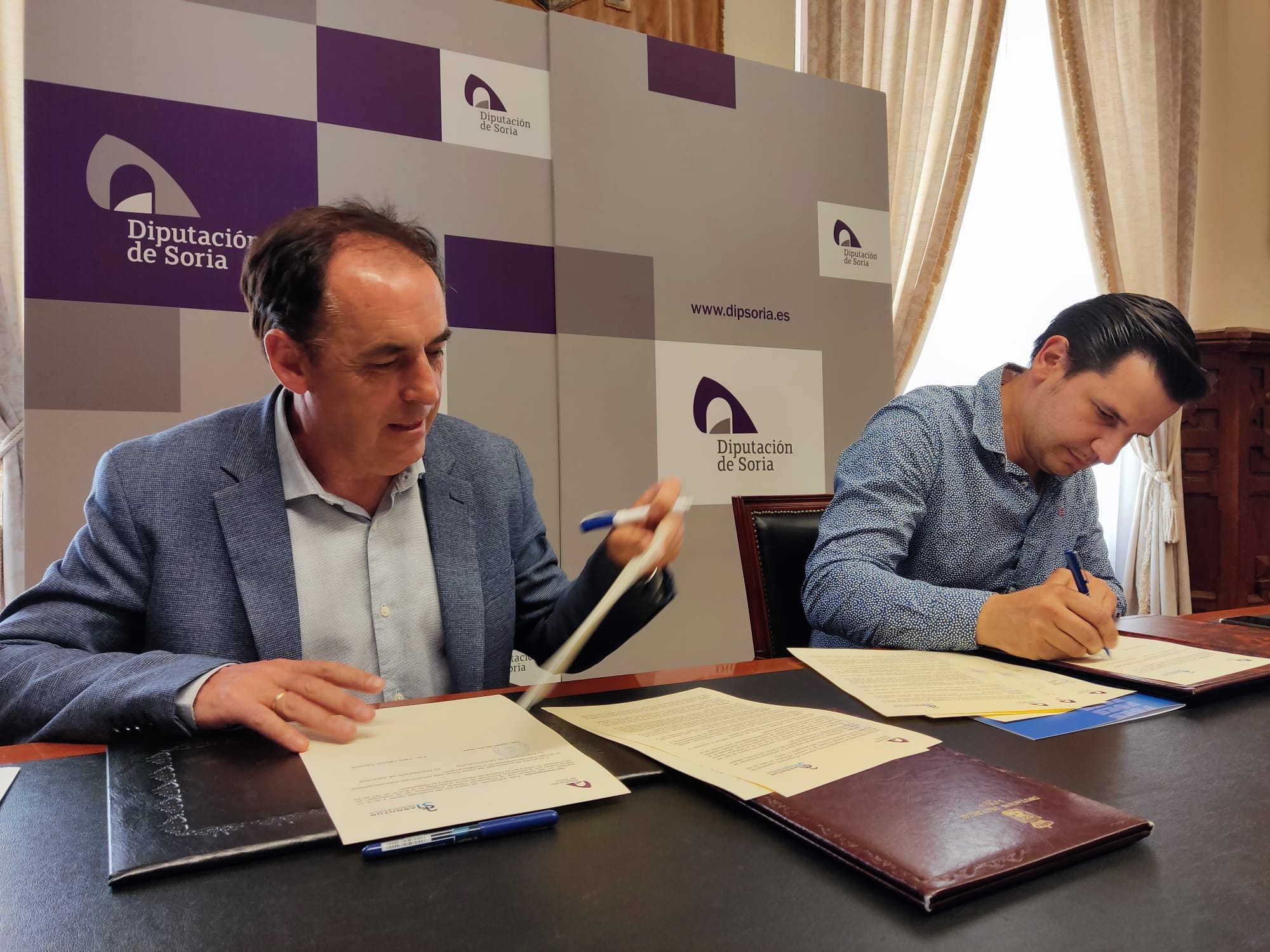 El presidente de la Diputación provincial, Benito Serrano Mata, y el presidente de la Agrupación Soriana de Hostelería y Turismo, Pablo Cabezón Cascante, han rubricado el primer convenio de colaboración entre ambas instituciones para seguir fomentando las actividades de este importante sector turístico.