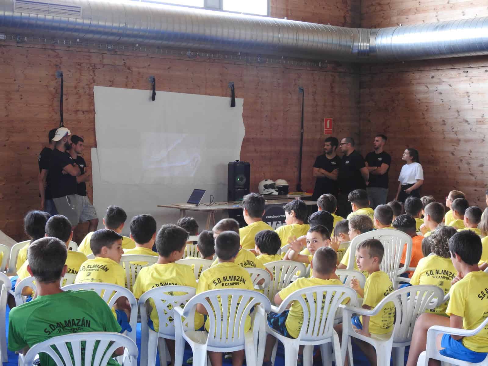 Hace unas semanas el club automovilístico apostó por incluir en su programa actividades de formación para los más pequeños. Con una exitosa visita al colegio de Berlanga, las llamadas no han dejado de llover a la directiva de esta innovadora escudería. Pues bien, este pasado viernes, realizaron una nueva actividad destinada a los pequeños, mediante una charla y exposición en el campus de fútbol de Almazán, donde alrededor de 80 niñas y niños de distintas edades pudieron tener su primera toma de contacto con la competición. Los objetivos de esta nueva escudería, no se basaban únicamente en hacer «carreras» si no que querían hacer actividades innovadoras, para todos los públicos, inculcar lo que para muchos es una forma de vida. Se trata de charlas lúdicas y entretenidas acompañadas de exposiciones de coches de competición, en los que los pequeños pueden montarse y hacerse fotos y así vivir una experiencia que seguro que nunca olvidarán. Los interesados en recibir la visita de la escudería pueden enviar un correo electrónico a clubdeportivobnnoracing@gmail.com
