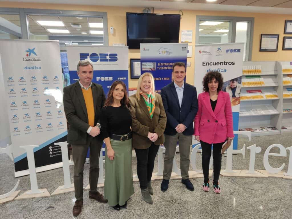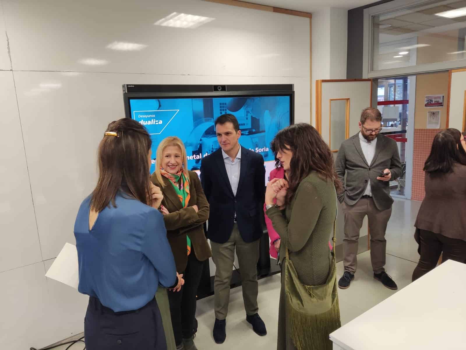 Esta mañana se ha llevado a cabo la jornada ‘Desayuno Dualiza: El sector Metal en la provincia de Soria’. FOES y CaixaBank Dualiza, en colaboración con la Junta de Castilla y León y el CIFP Pico Frentes han organizado esta actividad que pretende mejorar la relación entre la empresa soriana y la Formación Profesional. El encuentro ha juntado a empresarios del sector del metal con el sector educativo de la FP en el Pico Frentes en una jornada de 3 horas. En ella se exponen «los retos a los que se enfrente el sector del metal. Cuáles son las debilidades, la mano de obra o las características que necesita este sector empresarial en la provincia de Soria», explicaba la delegada Territorial de la Junta de Castilla y León en Soria, Yolanda de Gregorio.