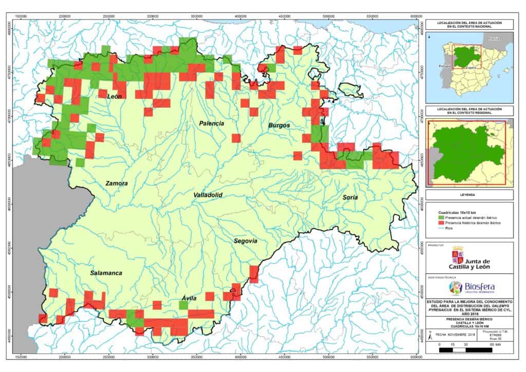 El desmán ibérico figura en los Anexos II y IV de la Directiva Hábitats y recientemente ha sido englobado en la Lista Roja de IUCN como especie en peligro, por lo que su conservación se torna de vital importancia. Castilla y León alberga uno de los mayores núcleos de esta especie en el arco cántabro – atlántico (noroeste de la provincia de Zamora, oeste y norte de León y norte de Palencia y Burgos), aunque también existen dos núcleos relevantes que por su carácter relicto y aislado en el sistema Ibérico (Burgos y Soria) y en el sistema Central (Ávila) podrían considerarse de excepcional valor ecológico y evolutivo, hechos que determinan la elevada responsabilidad de la Comunidad en la conservación de esta especie.