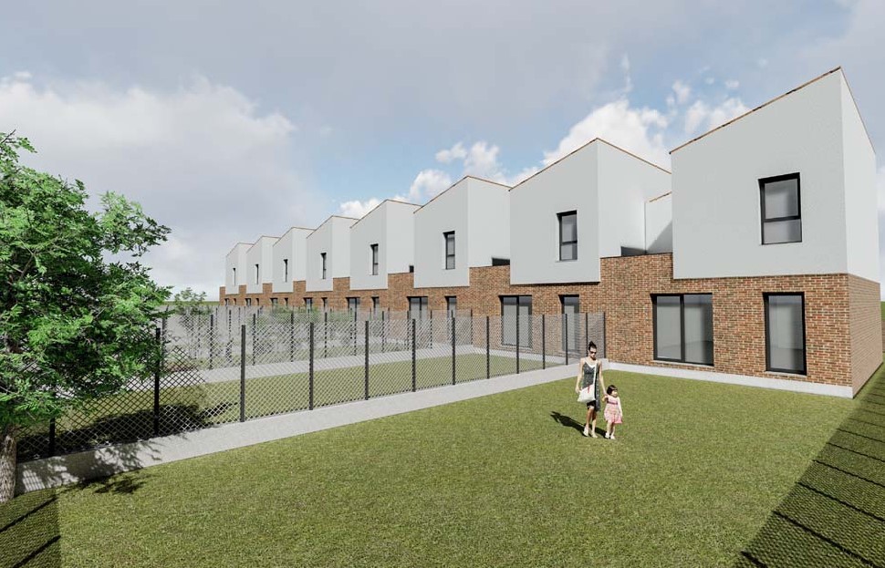 El plan contempla 27 parcelas de 200 metros cuadrados de superficie, en las que se construirán viviendas de tipología unifamiliar adosadas de dos alturas (baja y planta primera), con superficies comprendidas entre 85 y 90 metros cuadrados útiles de vivienda más garaje, trastero y jardín.