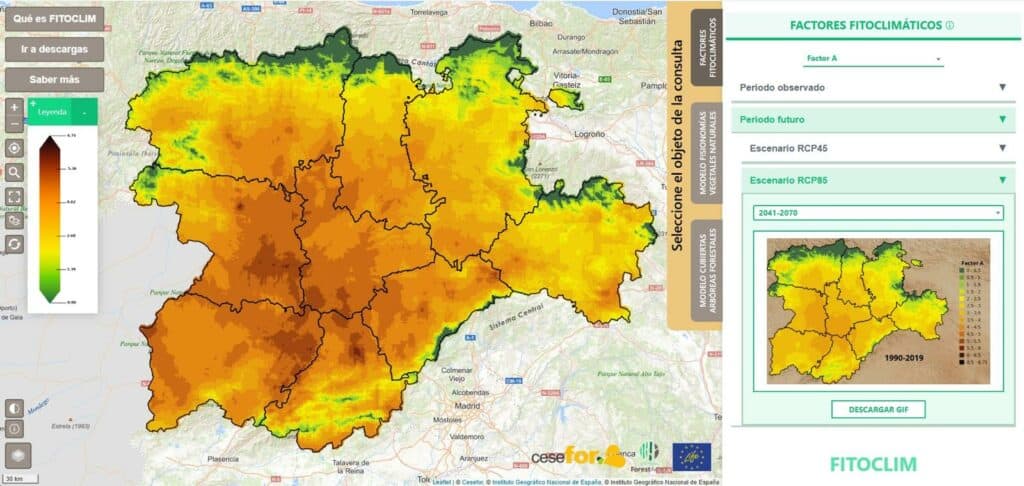 Uno de los resultados de esa iniciativa es la plataforma digital ‘FITOCLIM’, una herramienta que permite evaluar los efectos del cambio climático en las formaciones vegetales de Castilla y León y que será de gran utilidad para tomar decisiones de gestión forestal adaptada a las nuevas exigencias climáticas.