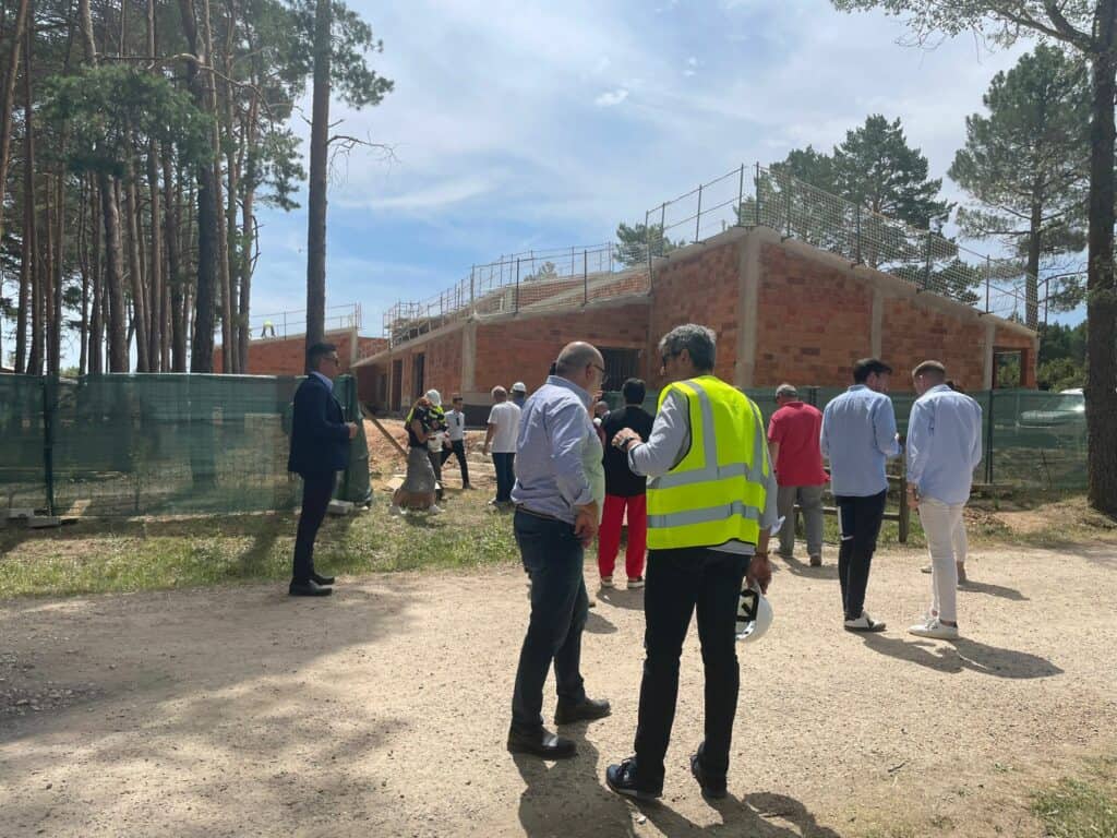 El secretario de Estado de Medio Ambiente, Hugo Morán, ha visitado este miércoles las obras de las instalaciones de la base de la BRIF de Lubia acompañado por el delegado del Gobierno en Castilla y León, Nicanor Sen, y la directora de Tragsa, Inmaculada Salas.