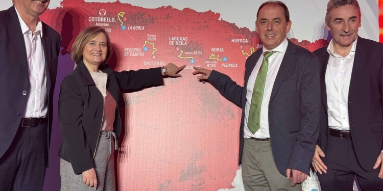 La provincia de Soria será protagonista en la próxima edición de La Vuelta a España Femenina de la etapa 5, Golmayo – Lagunas de Neila, un recorrido exigente que podría ser decisivo en la lucha por la clasificación general. El presidente de la Diputación, Benito Serrano, y la diputada de Turismo, Elia Jiménez, han asistido hoy en Barcelona a la presentación oficial de la carrera, que arrancará el 4 de mayo en la Ciudad Condal y recorrerá diferentes puntos de la geografía española hasta el 10 de mayo.