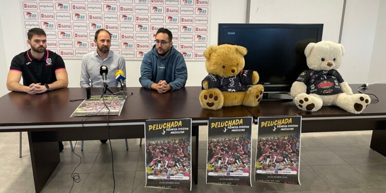 El acto del sábado se ha presentado en una rueda de prensa en la que han comparecido César Gonzalo, presidente del Sporting Santo Domingo, Pablo Mugarza, jugador del Moreno Sáez Sporting, y Rubén Ocón, en representación de Cáritas. Los tres han hecho un llamamiento para que la lluvia de peluches sea masiva y han agradecido por adelantado que se sumen a este evento el Club Voleibol Oviedo y el Club Voleibol Torrelavega, cuyo equipo cadete femenino presenciará el encuentro en las gradas de Los Pajaritos. El entrenador de este combinado es el soriano Mario Pérez, quien han diseñado para sus jugadoras un completo fin de semana en Soria, con amistoso ante las cadetes del Sporting Santo Domingo incluido.