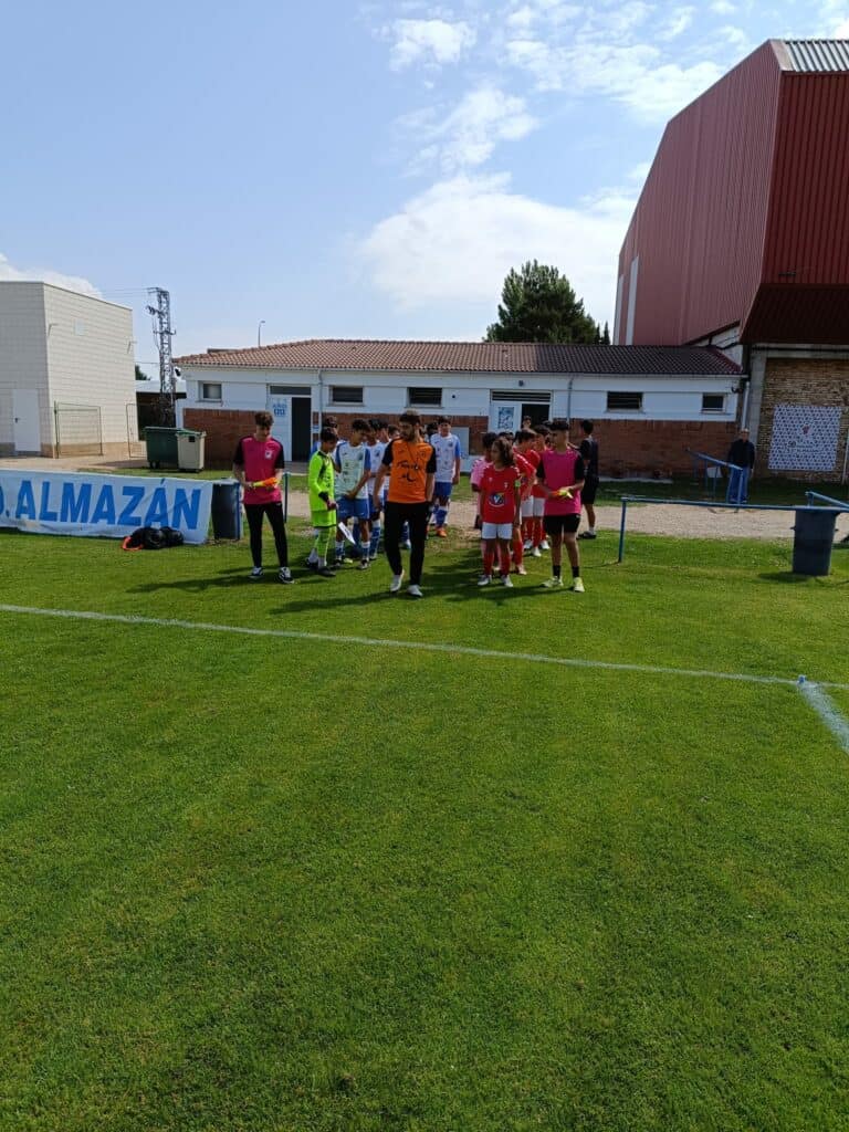 Cierre de temporada de la Escuela de fútbol de la SD Almazán con la reedición de ayer del que empieza a ser tradicional encuentro con la Escuela de fútbol de Vicálvaro, al que se ha unido este año la Real Sociedad Deportiva Alcalá. Se trata de la cuarta visita de la EF Vicálvaro en los últimos cinco años, sólo interrumpido en 2020 por la pandemia.