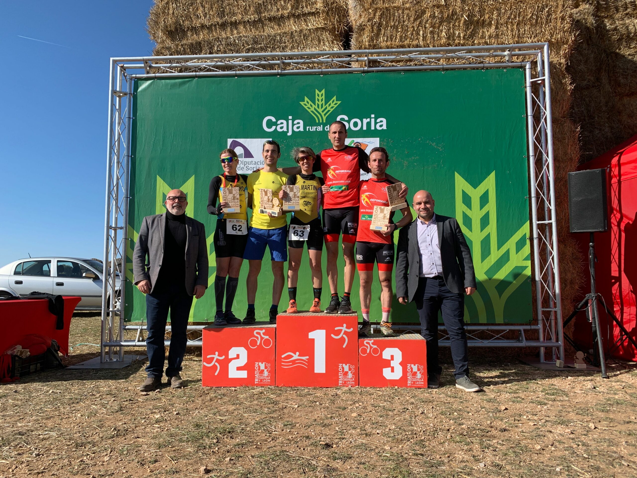 La localidad de Esteras de Lubia en el municipio de Almenar de Soria ponía en juego este sábado, por cuarto año consecutivo, el campeonato de Castilla y León de Duatlón Cross. En esta ocasión, con menor participación, probablemente acusando el frío del año pasado, aunque en contraste, este 2023 ha ofrecido una jornada absolutamente primaveral, con ausencia de viento y frío, cielos azules y temperaturas óptimas para la competición en la que se han dado cita algo menos de 70 deportistas. De las once ediciones de la prueba, Almenar ha puesto en juego el título hasta en cinco ocasiones, con victoria en esta ocasión para la vallisoletana del Triatlón IMD Segovia Marta Martín (1.43:23) y del soriano del Triatlón Soriano David Rodríguez Rújula (1.14:31).