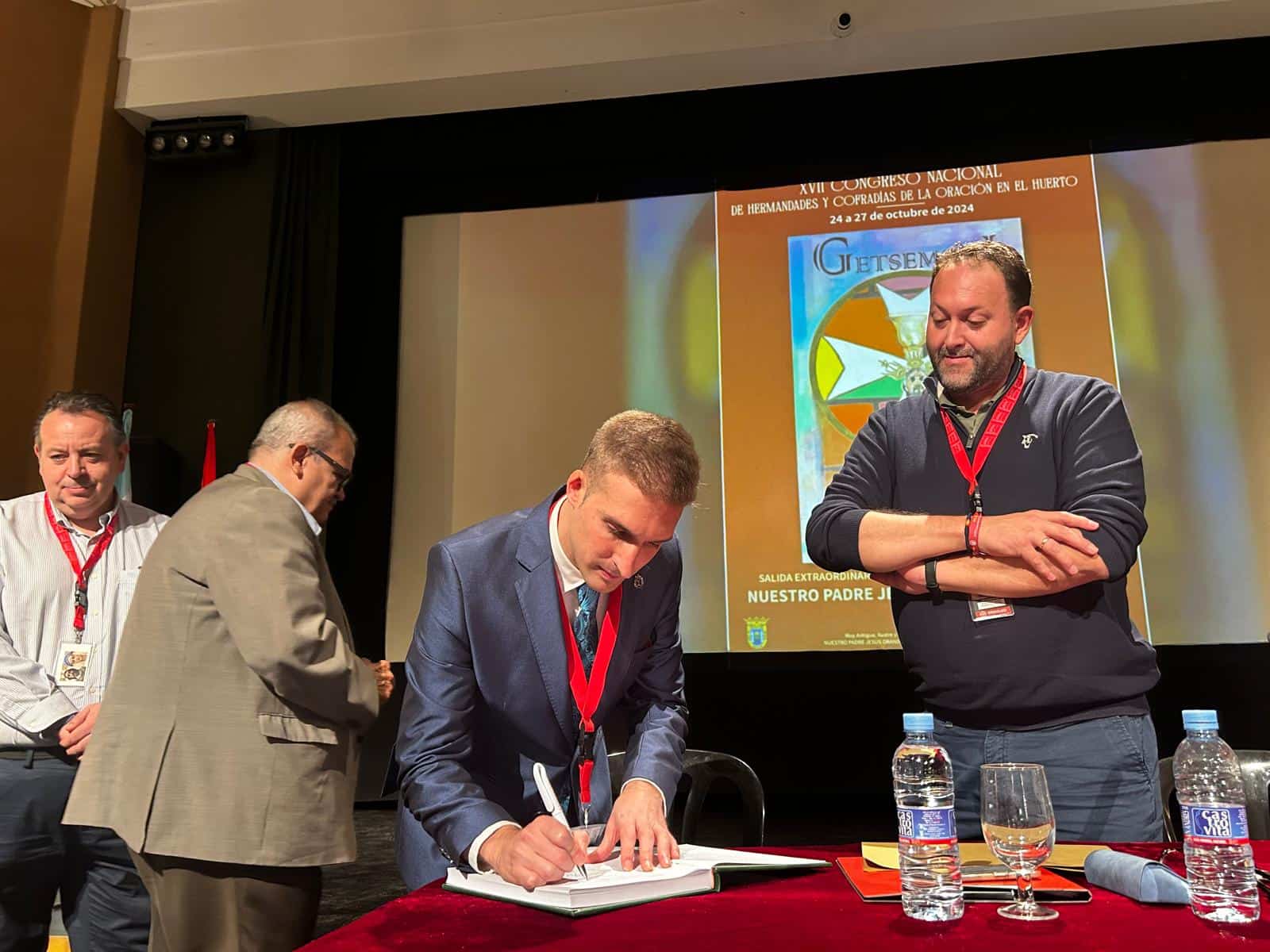 En la mañana del sábado 26, el hermano mayor de la cofradía soriana durante su intervención en el salón de congresos, dono un libro de actas a la Confraternidad Getsemaní, firmando este acto conjuntamente con el presidente del congreso y los delegados de la confraternidad para Tierra Santa y para la Comisión de Congresos Nacionales.