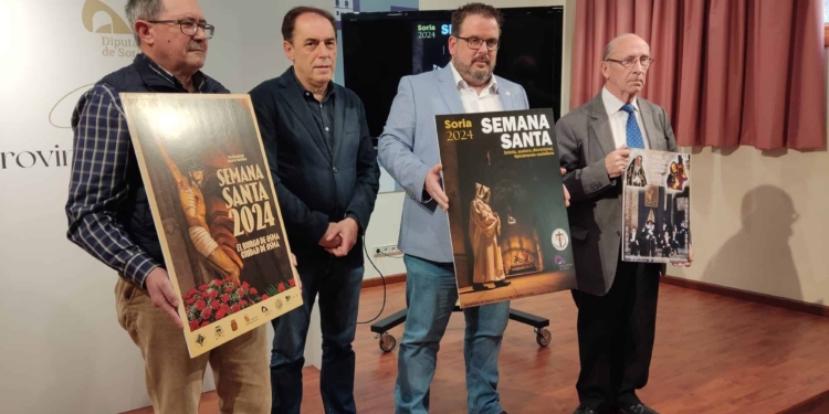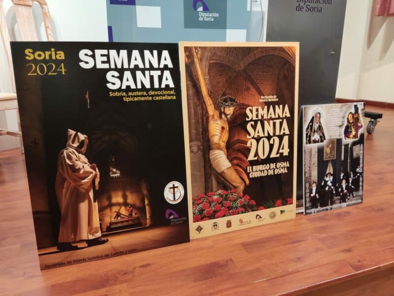 Esta mañana se han presentado en el Salón Posada de la Diputación Provincial de Soria los carteles que se han realizado por parte de la Imprenta Provincial de las tres celebraciones de la Semana Santa que son Fiestas de Interés Turístico Regional: Soria, Ágreda y El Burgo de Osma.