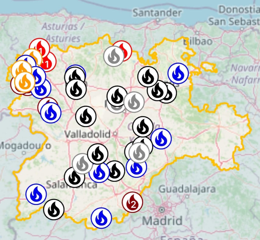Al cierre de la jornada del domingo, todas las provincias de Castilla y León habían sufrido, o estaban sufriendo, uno o varios incendios. Todas menos la provincia de Soria.